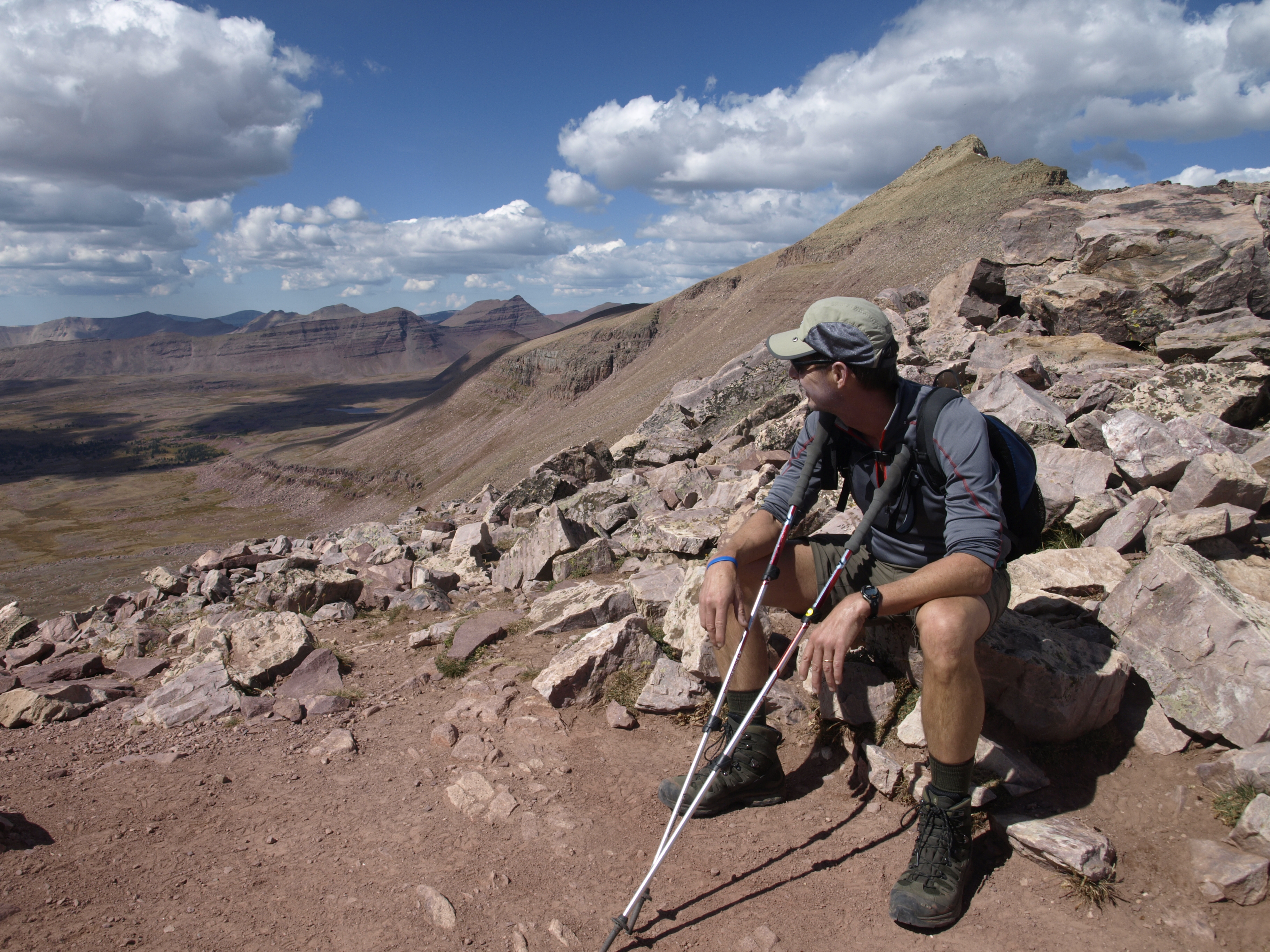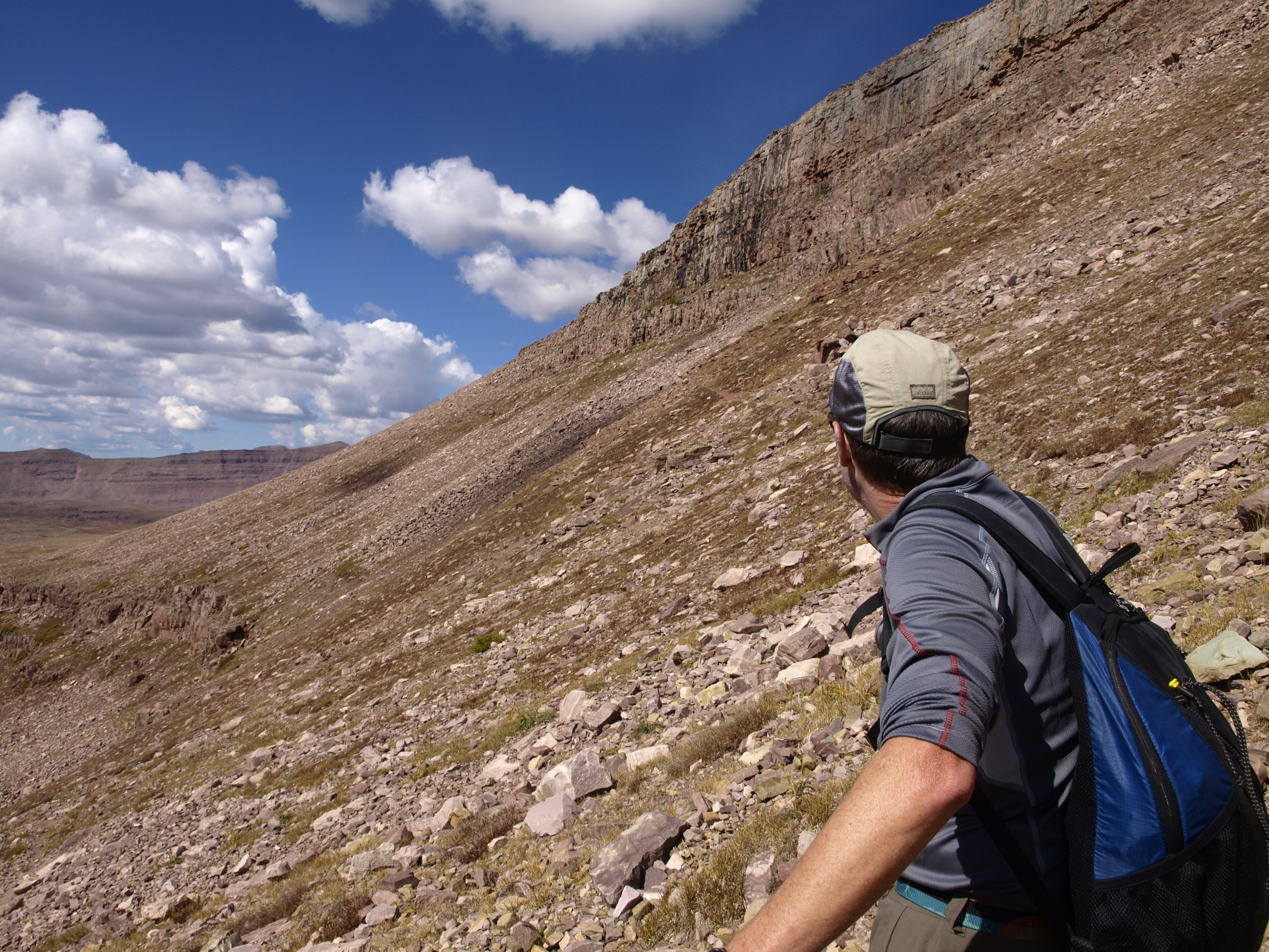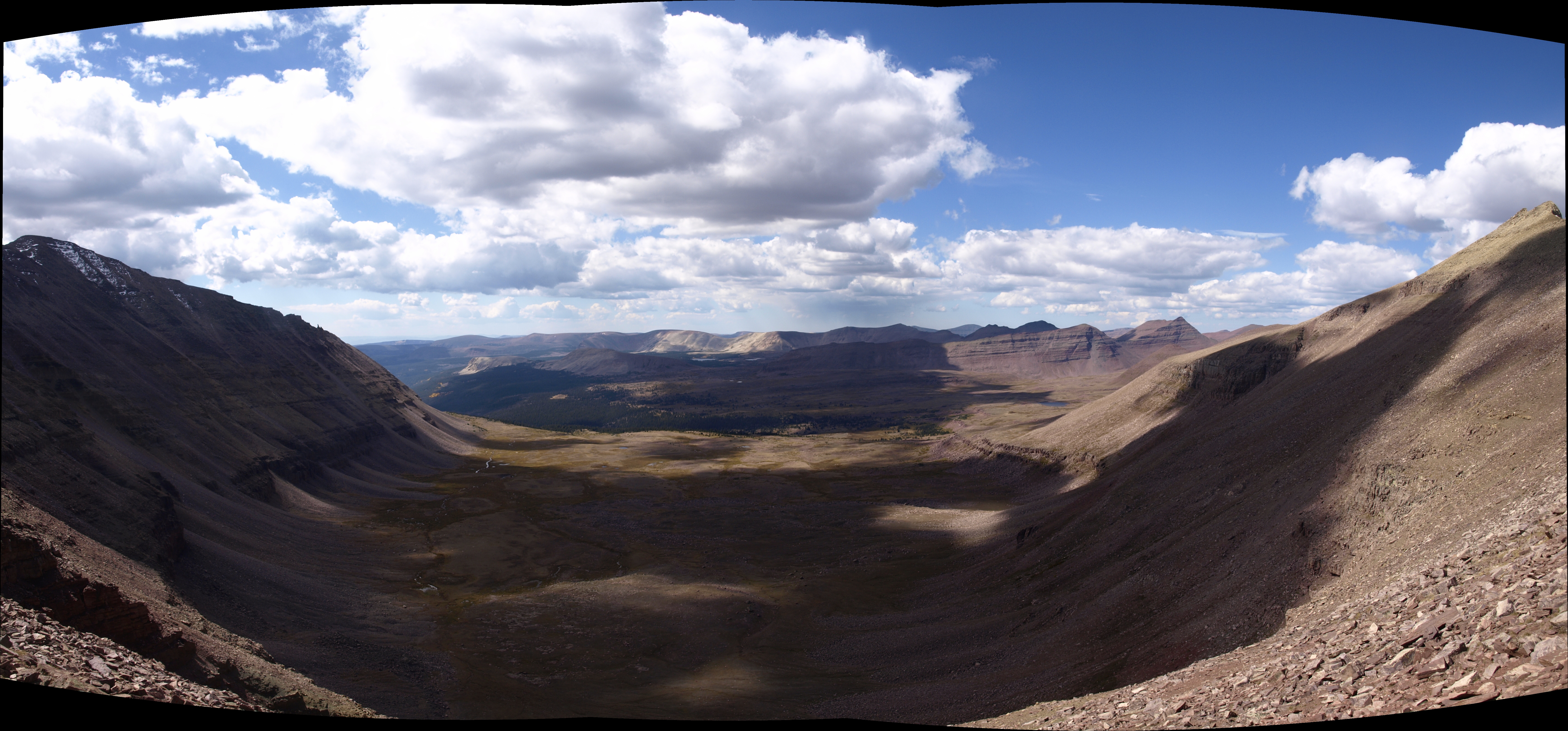 Another shot of the Kings Peak talus slope. At full res, you can see some of the lakes back in the Garfield Creek Basin. There is Five Points Lake (the largest), Superior and Little Superior to the right. There is a little unnamed lake just shy of Tungsten Pass.