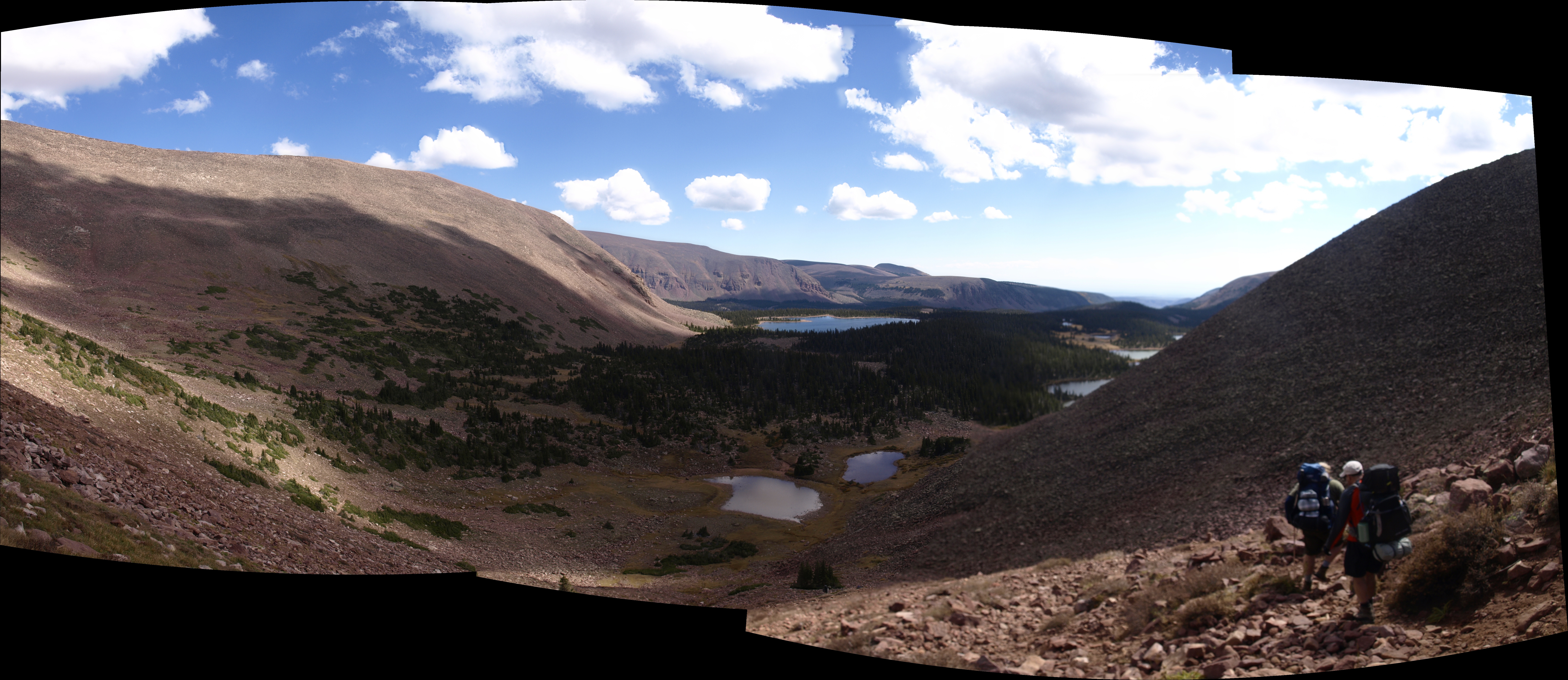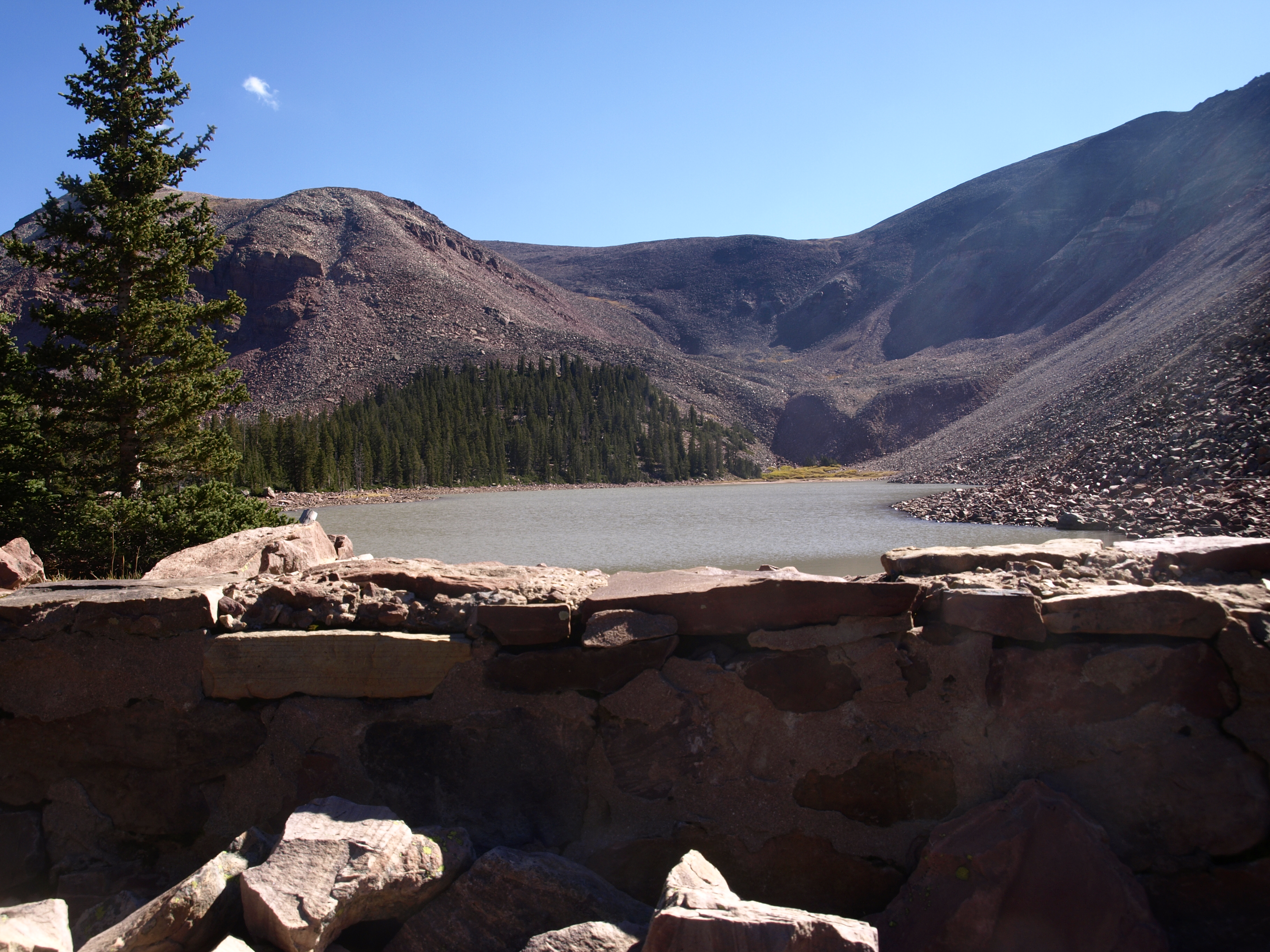 Funny thing about wilderness trails. Though apparently it is okay to post signs at trail junctions, it is not okay to utilize artificial markers. So no blazes on any trees, however, it is okay to slash a tree. This is the practice of taking a hatchet and striking a vertical chip out of the bark. It creates a scar that serves as a marker. Another marker is the rock cairn, which of course requires rocks. Turns out there are a lot of rocks in the High Uintas. With all of this, including the fact that people bring horses and other pack animals along these trails, it is still possible to come to a point where it is not clear where the damn trail goes.