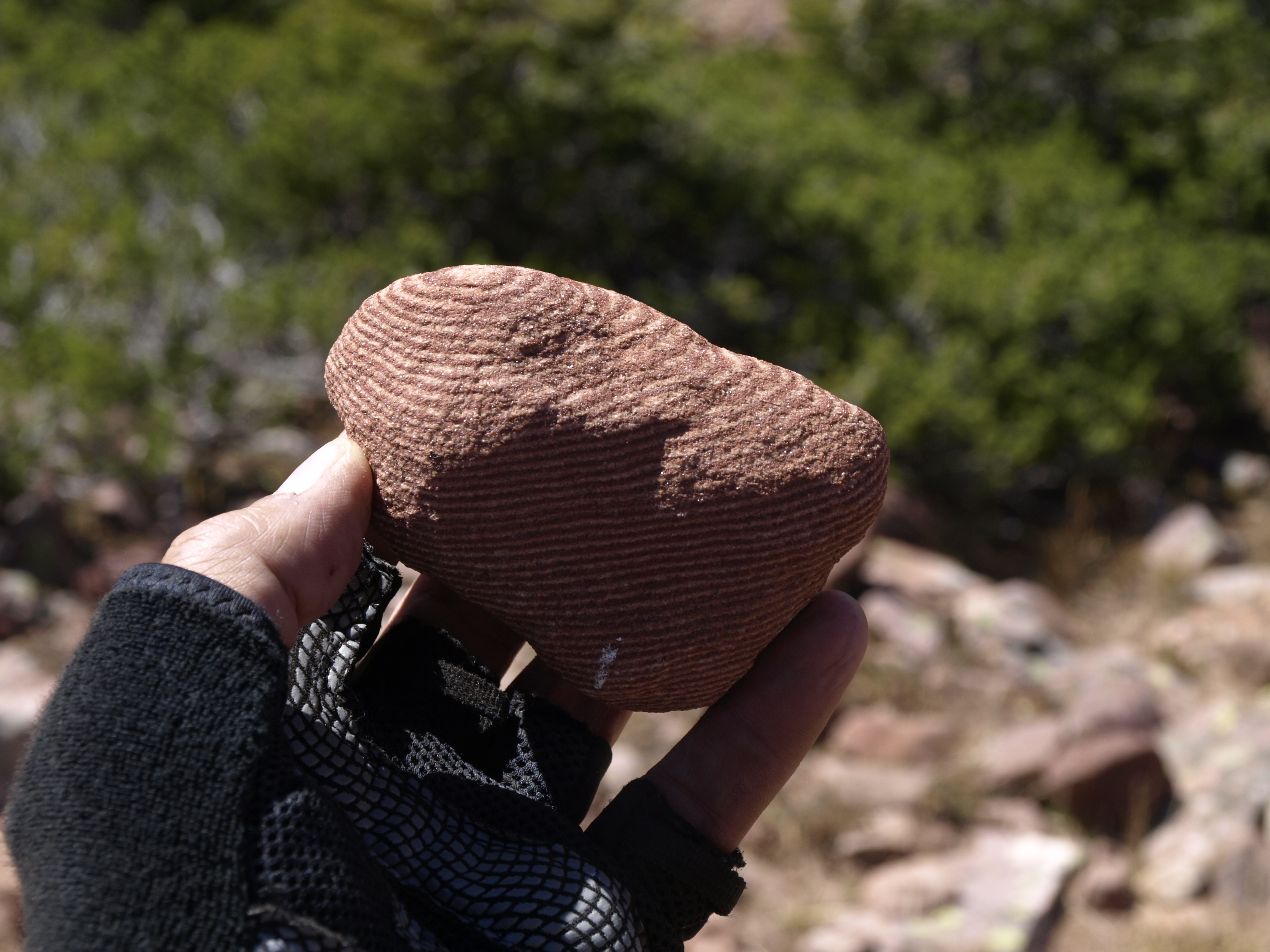 Always nice to come home with a geology specimen, but this is just a wee bit too large. However I did really like the fine thin layers represented here. There are about 50 layers laid down in just this sample. Each layer isn’t very thick, but consistent. Hard to say what caused it to form this way. Perhaps the red is the yearly flooding of a plain and when it dries out, dust settles atop. Repeat. I don’t know.