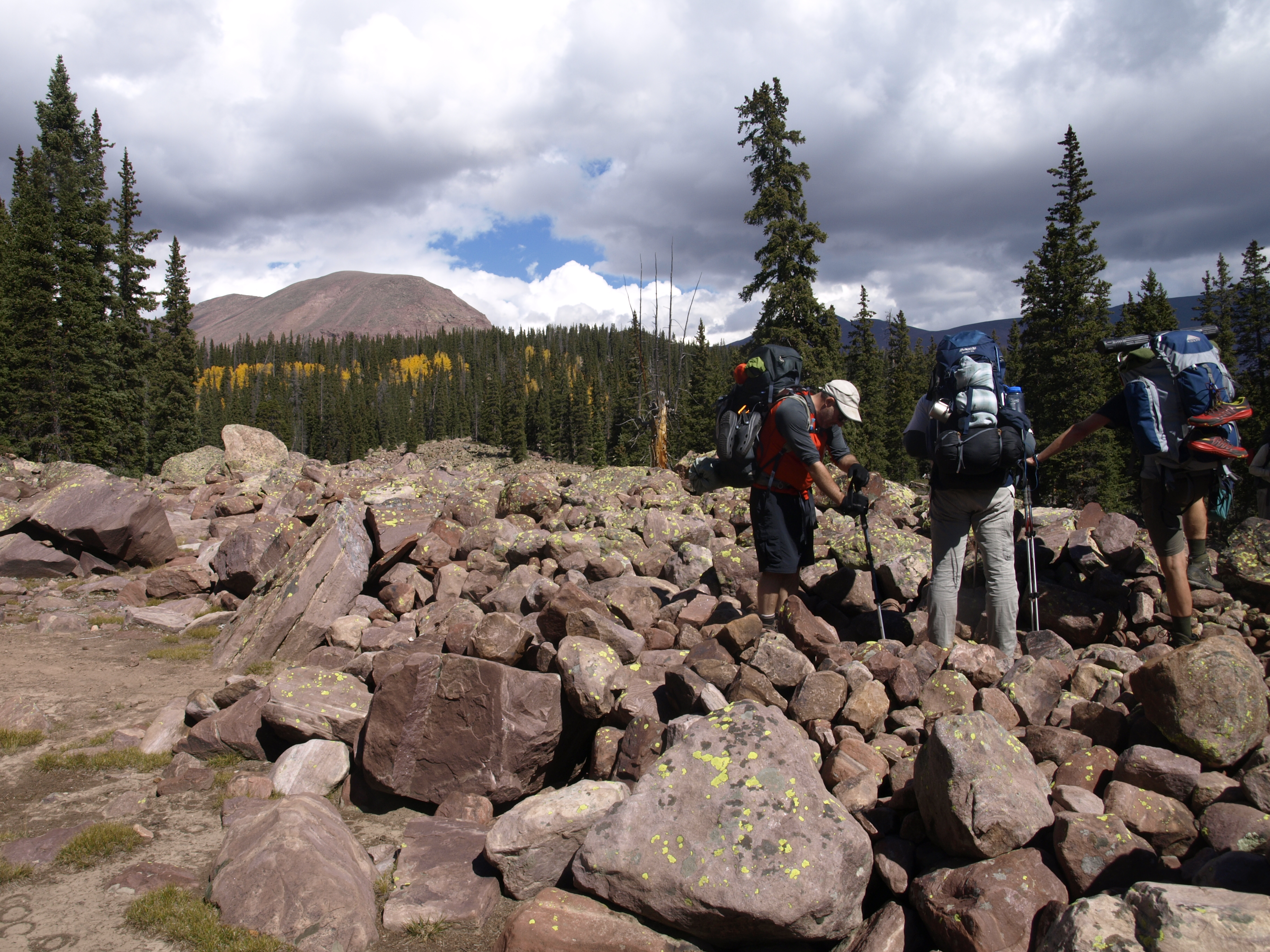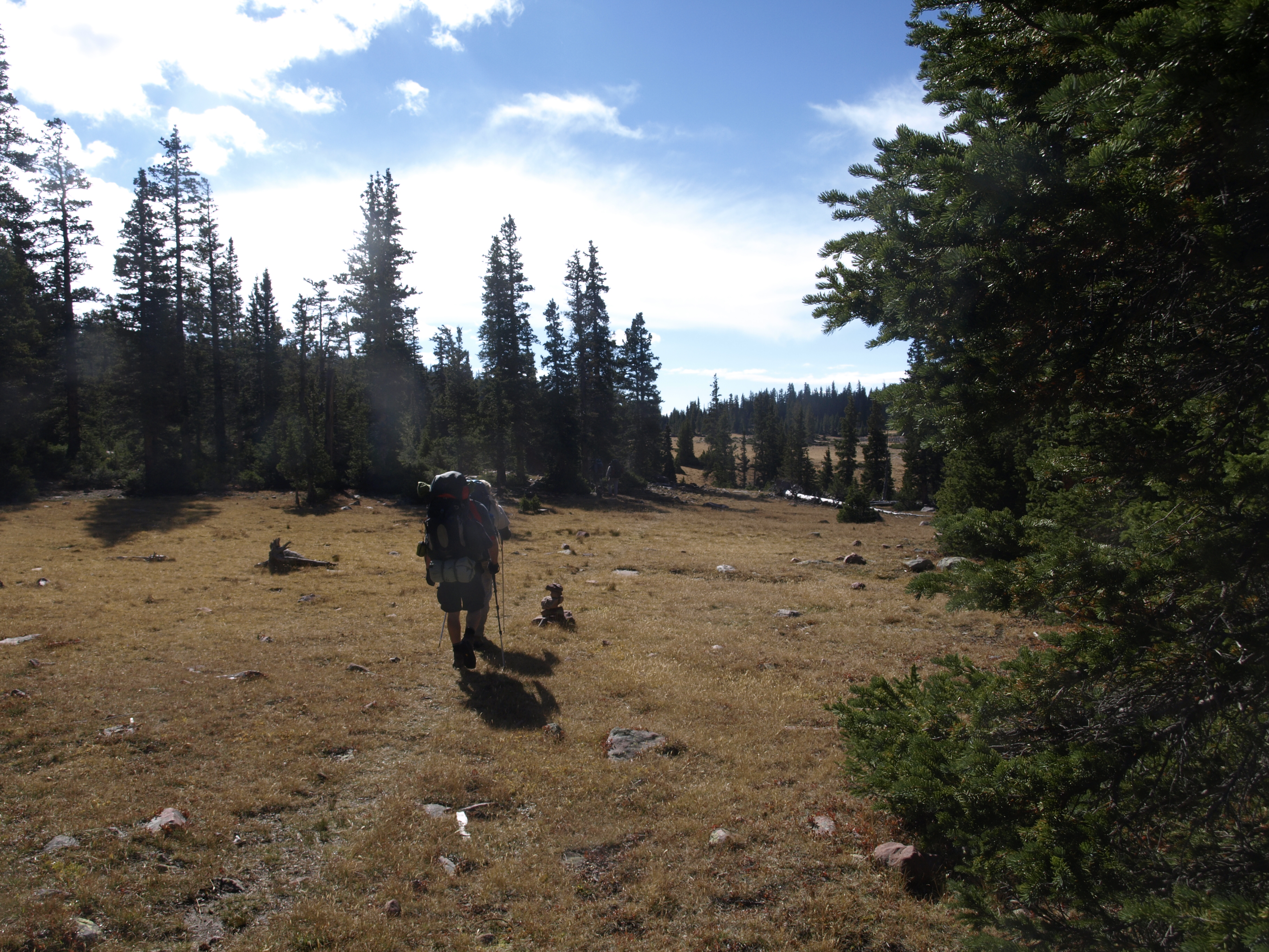 The original plan had been to spend two days up in Swift Creek Basin with a day hike or fishing on the table. Maybe hike over to the Timothy lakes to fish. However, with all our extra unused fuel, and a few other purchased items to return, we felt that maybe we should move our last nights camp closer to the trail head. Then we could get an easy start to our last day, be out by 11, packed by noon, grab a greasy spoon diner meal, and get back to SLC before REI closed. Most of the hike would be downhill, so what wasn’t to like in this new plan? Nothing, as it turned out.