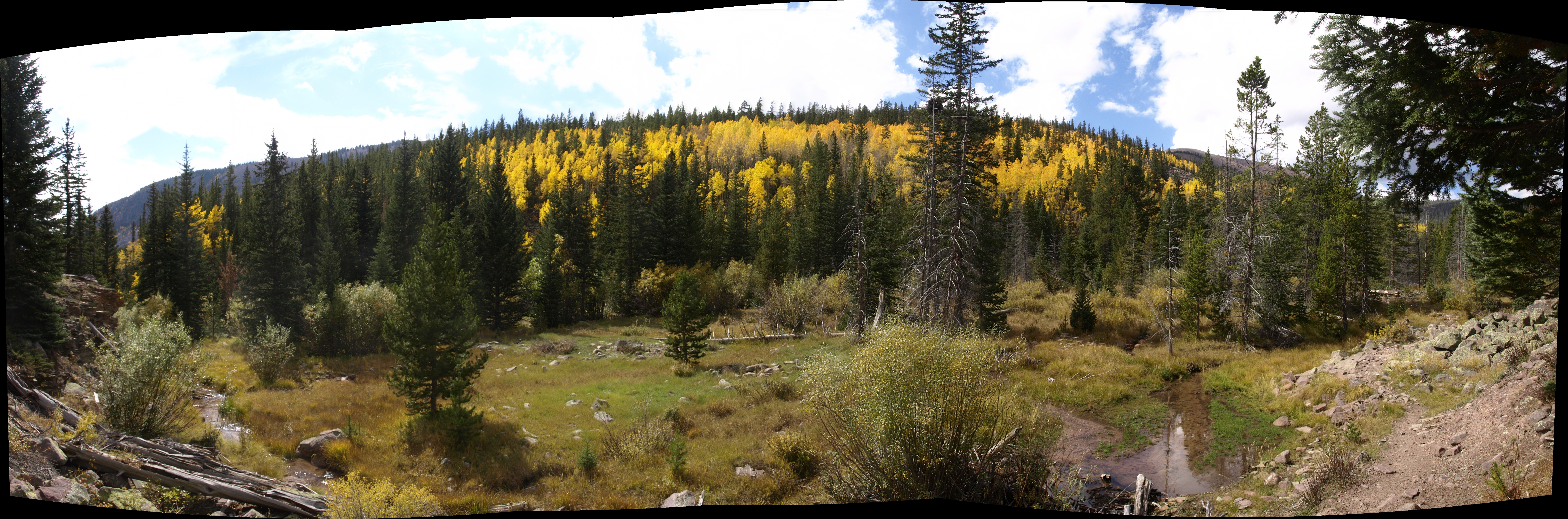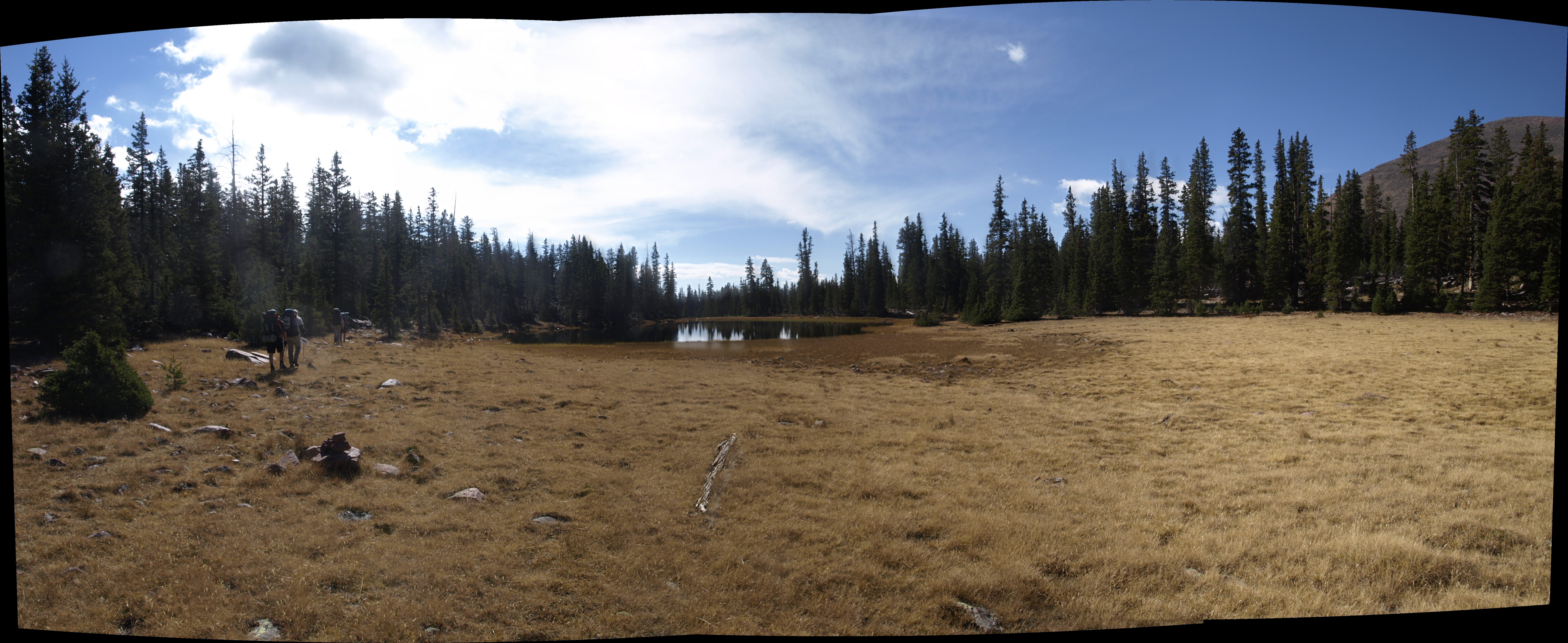Our first intermediate destination was the junction where we would turn off H-55 and onto the trailhead trail. This was just below Farmers Lake (Hmmm I wonder where that name came from), and was only about a mile, mile point five down the trail from our camp. Some of our last wide open meadow experiences would be along this short section of the trail and I captured them with some decent panorama shots.