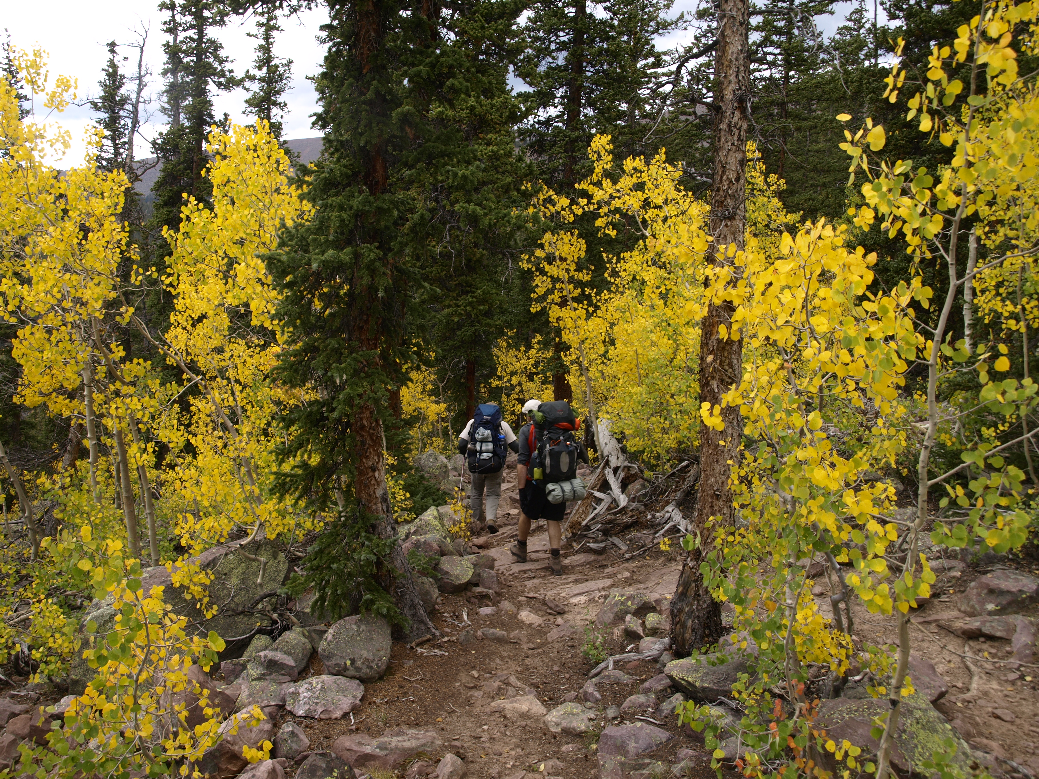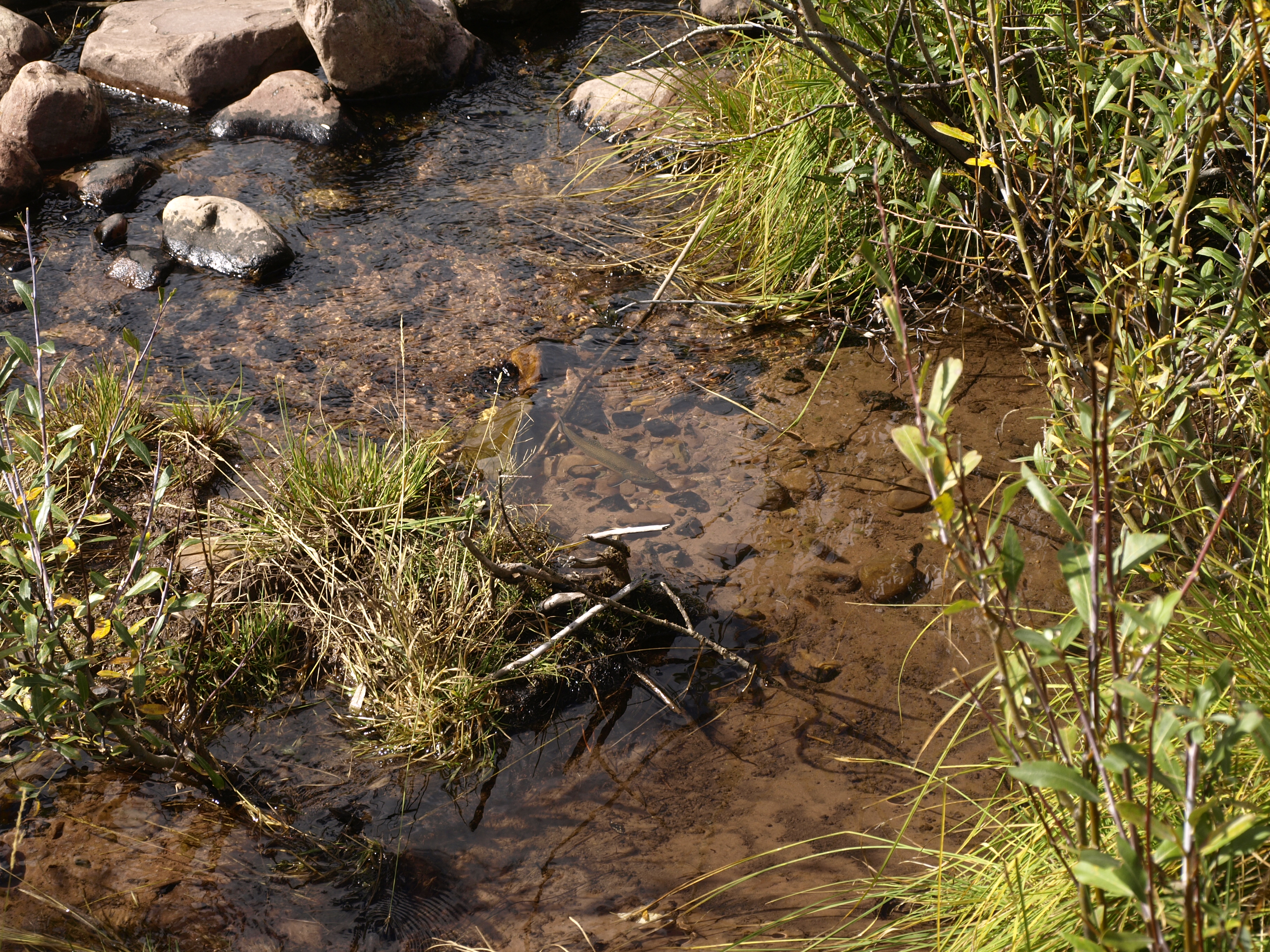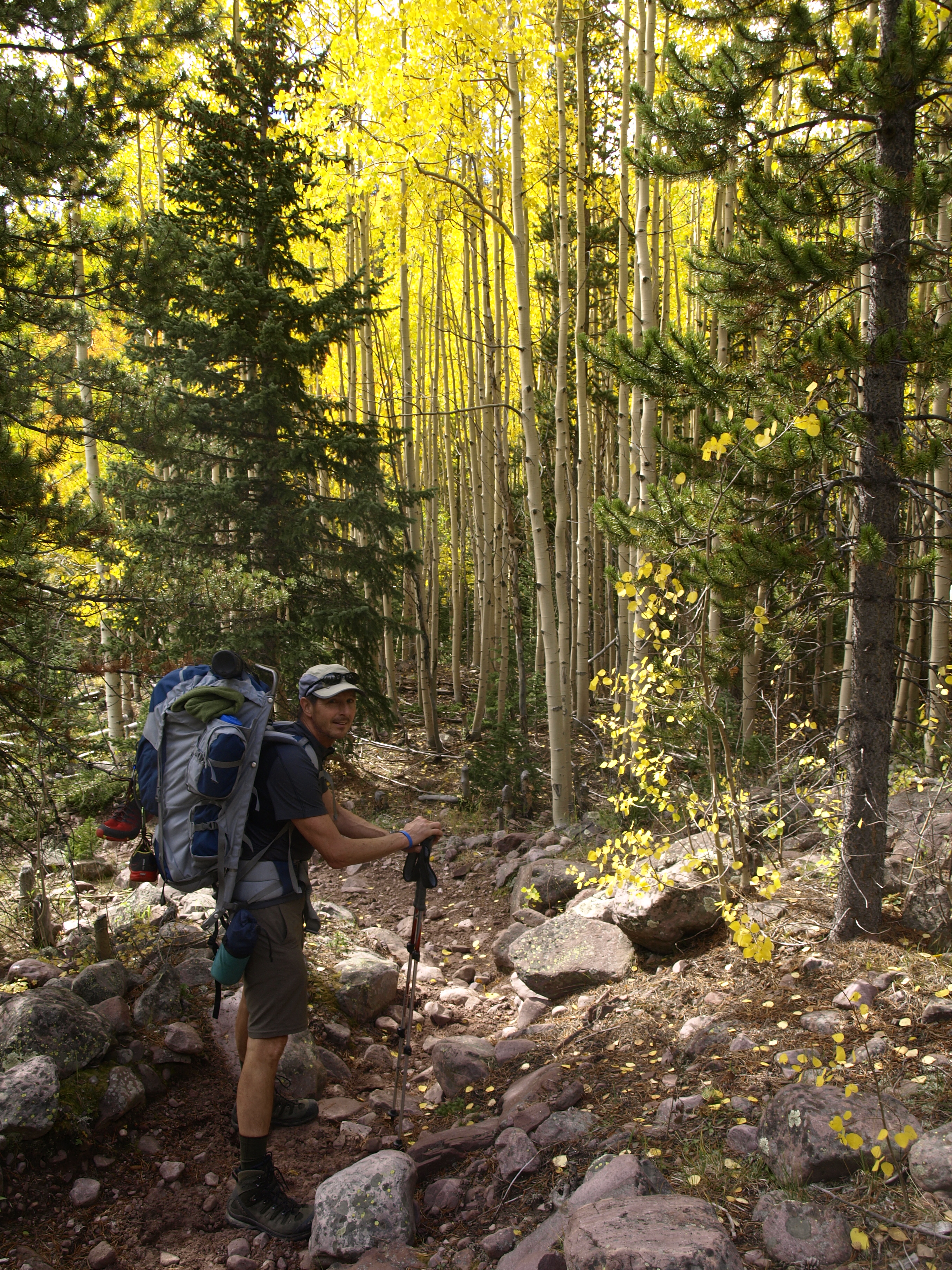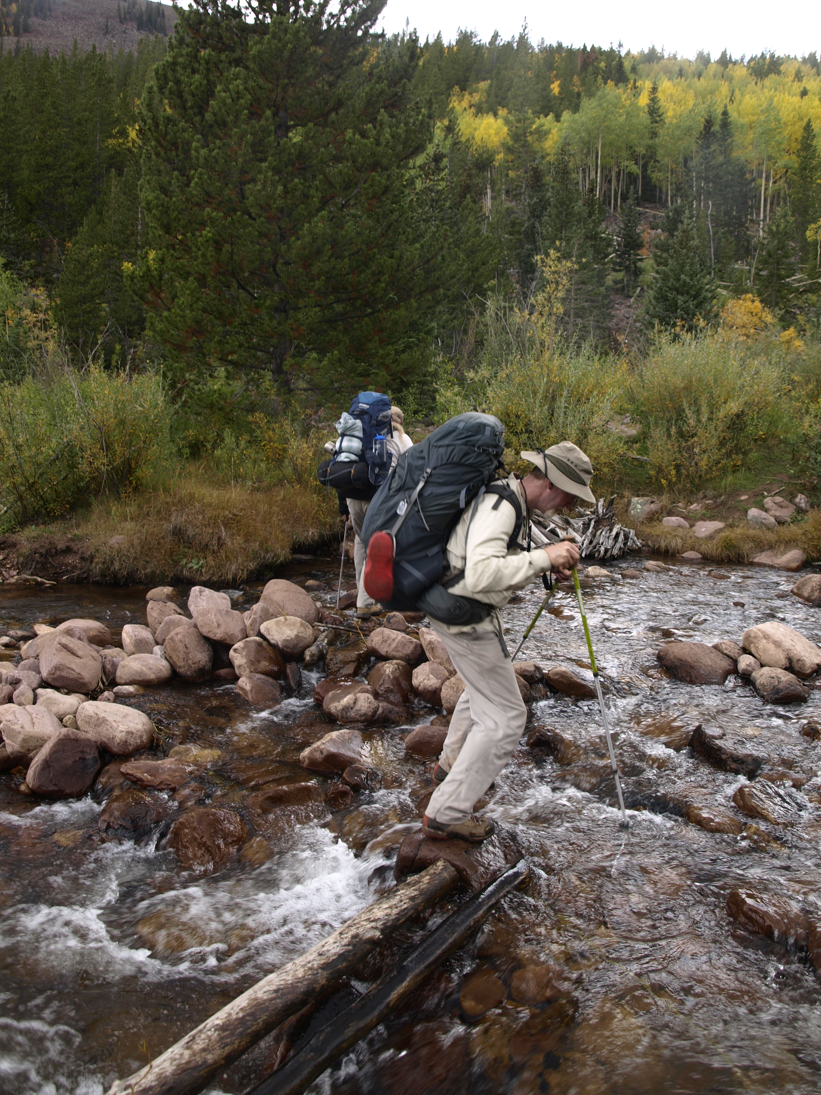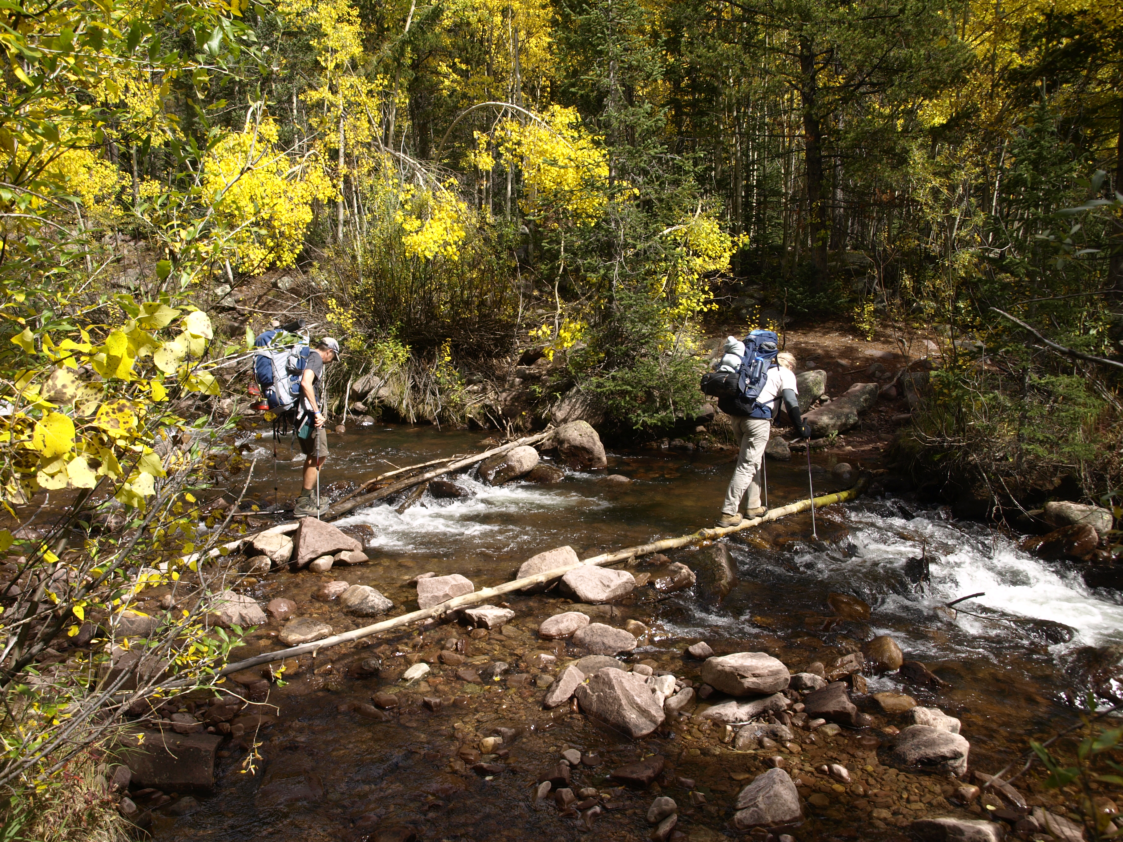 Aspens. It is a name, like chocolate, that can simply stand on its own. You say “Aspens” and it is always the fall color images that immediately come to your mind. They appear to be on fire they are so bright. The Swift Creek Trail runs right through them, and this was the first time on this journey that we were right in amongst them. Aspens also mean something else. Beavers. They love Aspens. Tasty nourishment, and just the right tree to build dams out of. So as we approached our first Swift Creek crossing, the Beaver dams began to pop up. Not one, or two but many. It almost resembles terrace farming you see in oriental images where farmers carved out flat terraces for their rice paddies, except it is Beavers, and each little pond harbors silt and nutrients sustaining life for the fishes. A remarkable scene.