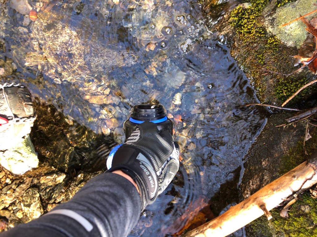 The sixth time I felt my bladder had to be emptied, was around 5:10 in the am. I had slept on and off, however 5 times I had to get up at night, and one of those times, I needed to go around my tarp and move the rocks to tighten up the tautness in the tarp. I even extended the tent poles a little more to give me a wee bit more clearance. Anyway, here it was 5:10 in the am, and I knew I needed to get up. The question I presented to myself was this: “Why not simply get up, eat, and get going? Why pull into the destination shelter near the end of light? Why not simply, get there early? I contemplated these thoughts within the warm confines of my bag for another ten minutes, and then decided to follow through and this time, rather than simply dressing to pee, I dressed for the day.