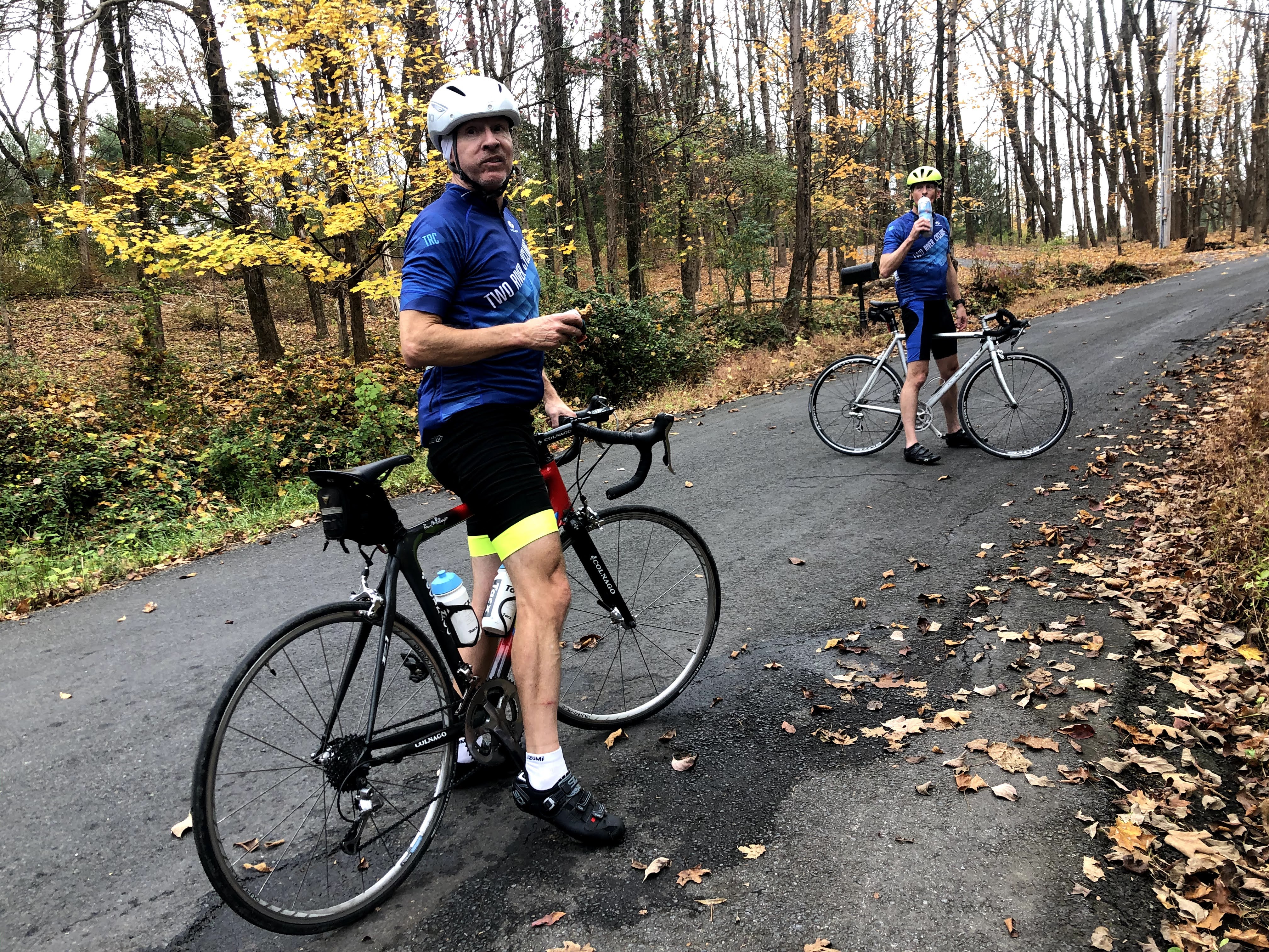 At some point we wandered into the areas covered by The Hell of Hunterdon, and Fleche Buffoon, so I started to recognize things, and roads and ways became familiar. For instance, I knew when we were heading into Frenchtown, because it was the reverse of the course from Fleche that headed out. While in Frenchtown, we stopped at the smallest convenience store I have ever seen, part of the Exxon. Without social distancing it was nearly impossible to squeeze anyone inside, so you might imagine trying to observe 6′ of separation. It was tight quarters in their, yes, but I managed to find a chocolate payday bar. How do you make a payday bar better? Chocolate, of course!