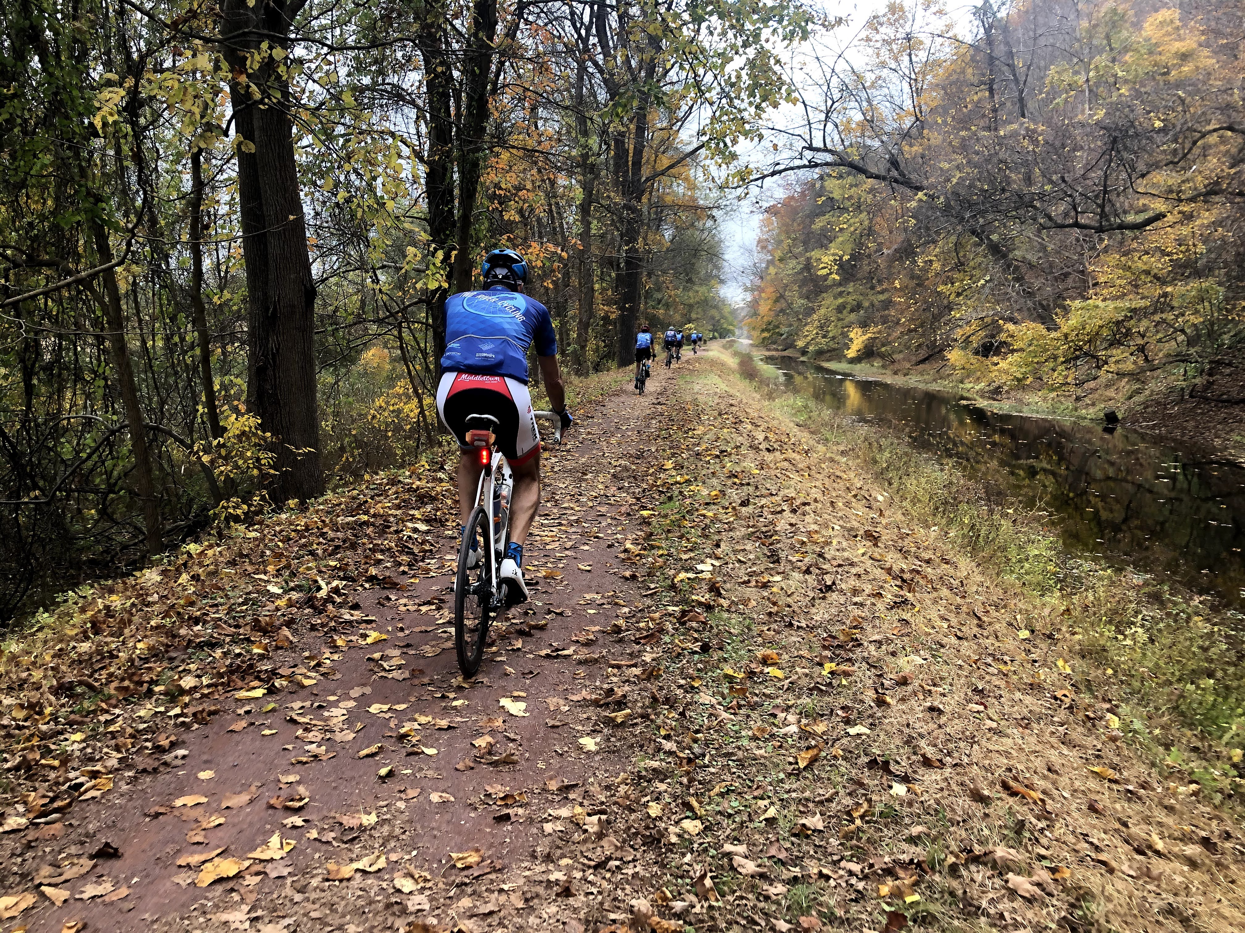 We re-crossed the Delaware on the foot bridge to Bull’s Island State Park, where we picked up the Towpath on the Jersey side for the final miles of our ride. It was a very nice day, and I think in retrospect, the last place you want to be, as a fairly serious cyclist, is on the towpath with every other Tom, Dick, Harry and Jane out for their cycling experience. There just isn’t room for all of us, and we really should have simply gone out to Route 29 and ridden the large shoulder all the way to Stockton, but that isn’t what we did, and then what followed, which was completely my fault, disrupted the harmony of the Universe that we had achieved during our ride. I had taken a picture of our group, which I was behind, and had trouble re-attaching my phone to my handlebars as everyone else successfully rode around a slower rider travelling in the same direction. I was still kind of limited in my concentration to what was immediately ahead of me, the slower rider, when I didn’t look further down trail to see that the way was clear, when I moved to the left. That lapse in judgement put a huge scare into the younger woman (early 30ish) that was going the opposite direction. We did not engage in a crash, because I got out of her way just in time, but not before a stream of angry words issued forth from between her not-so-sweet lips. I uttered a sincere apology, but she kept screaming and yelling, and after my second apology, and she was still screaming, I had the scream back that I was only going to apologize twice if she kept up her rant. That was that. We went our separate ways.