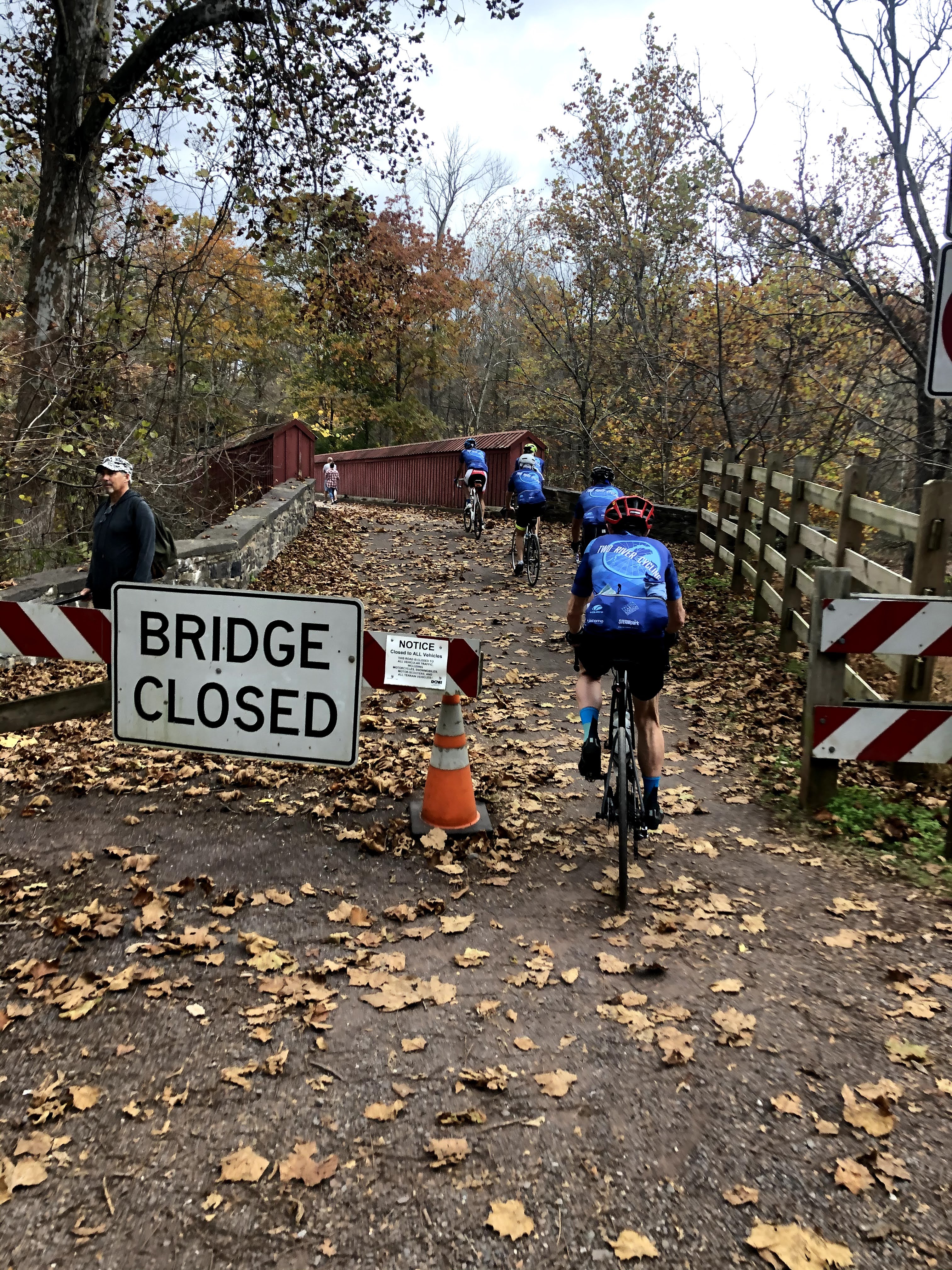 It is against this backdrop that I bring you a recent bicycle adventure I participated in with a new group of cyclists. This all began about two and half months ago when Robert R queried a bunch of us about riding the Covered Bridges Ride in Bucks County. This is a real organized ride, that was run in 2020, with safety precautions, but Robert wasn’t able to commit that weekend, and still wanted to ride it, and thus was looking for fellow cyclists to engage. Out of the bunch it was mainly he and I that were trying to put the ride together, and we were settling on a Thursday (which Thursday is unimportant), and we were trying to entice others to join us. I think Robert had the day off, and I was going to take the day off, but finding people who would take a vacation day for a ride is like trying to find humanity in a Trump supporter. As we were planning this, Joanne P sent me a picture of a loop that started and ended in Jersey, and covered about 65 miles of Hunterdon and Bucks counties, asking if I knew anything about the route. As it was a picture of the route, and not the RideWithGps route itself, I could only ascertain that it covered many parts of both counties where various rides that I have done, have ridden, so that while I wasn’t familiar with the exact route, I had ridden many of the roads traversed, and since she wanted to know if it was “hard” I told her there would be a lot of elevation changes, but she would not have any issues with them.