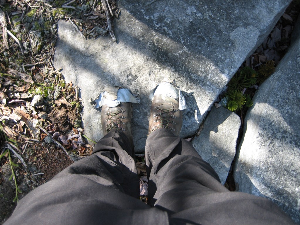 Mr. Bichon: Brings to mind another footwear-related mishap from yesteryear, like this one from Nov. 2005 which some of you (Mr. Pointer, Mr. Collie and Mr. Samoyed) may recall.  Can’t recall the area we hiked, though the second pic may lend a clue……….