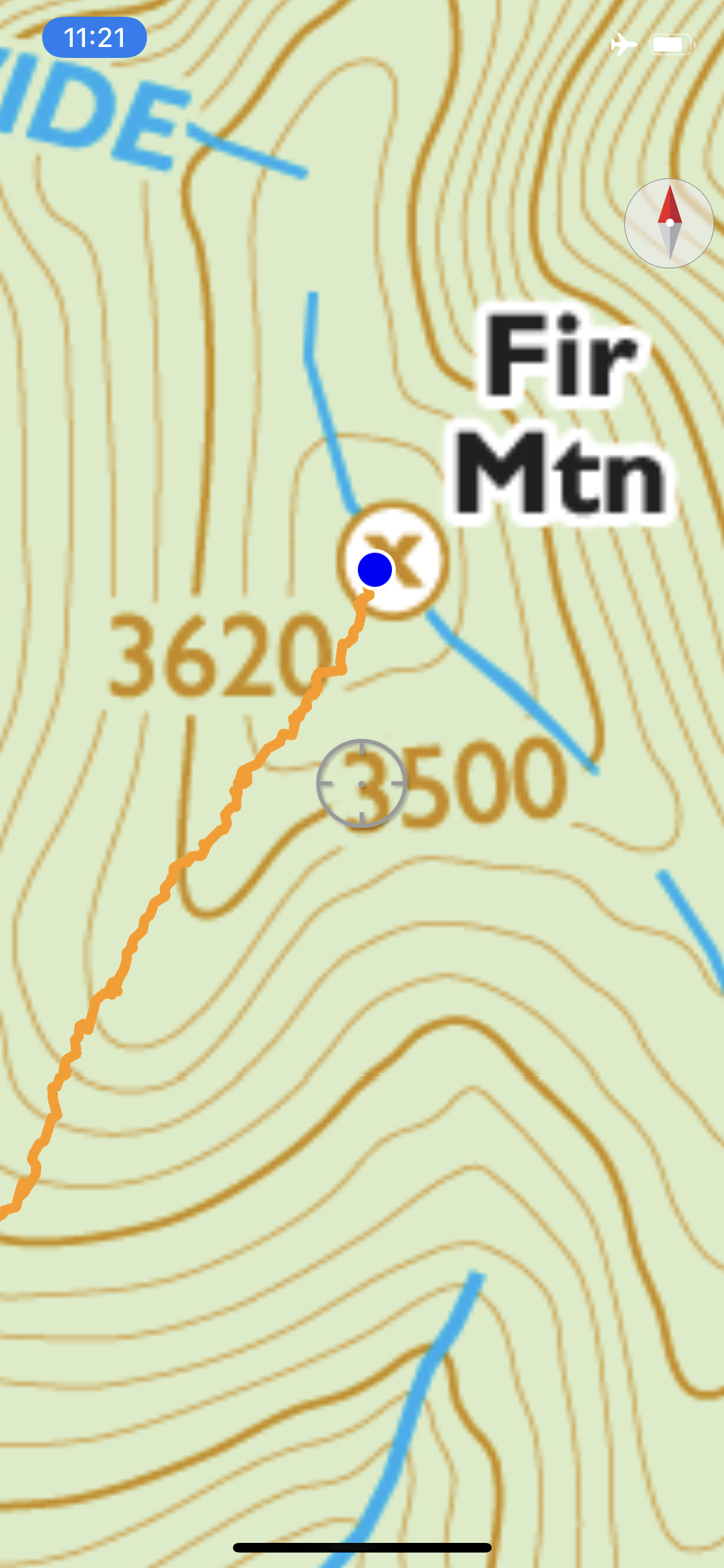 Since I am telling an honest tale, I will tell you that in the initial half mile of the bushwhack, there are open viewports showing a rocky hilltop kind of in our direct path, and not being familiar with the trail, and not looking at the map on my phone, I thought that was our ultimate destination, however, when we branched off, we branched after a stream, and that stream was still between us and the peak I was looking at, and the bank down to the stream kept getting steeper, and so we kept hiking in a Northerly direction, which I thought would take us around the stream eventually, but what eventually happened, was we never saw those rocks again, and we kept going Northerly. Ha! I got out the map, triggered the compass feature, and sure enough the summit we sought, lay in a basic Northerly direction, and were on a gently rising spine that had a few not so gentle elevation profile bumps. All those bumps took us up 50-100 feet at a time, until there were only two more 50′ grade lines and we were there. As we approached the summit, we crossed paths with a group that was up and backing it. Our plan was to bushwhack the saddle connecting Fir to Big Indian, but more on that later. Soon the 3″ plastic pipe register container was in front of us, and soon our names were written in that register, and 3500+’ Fir was in the bag.