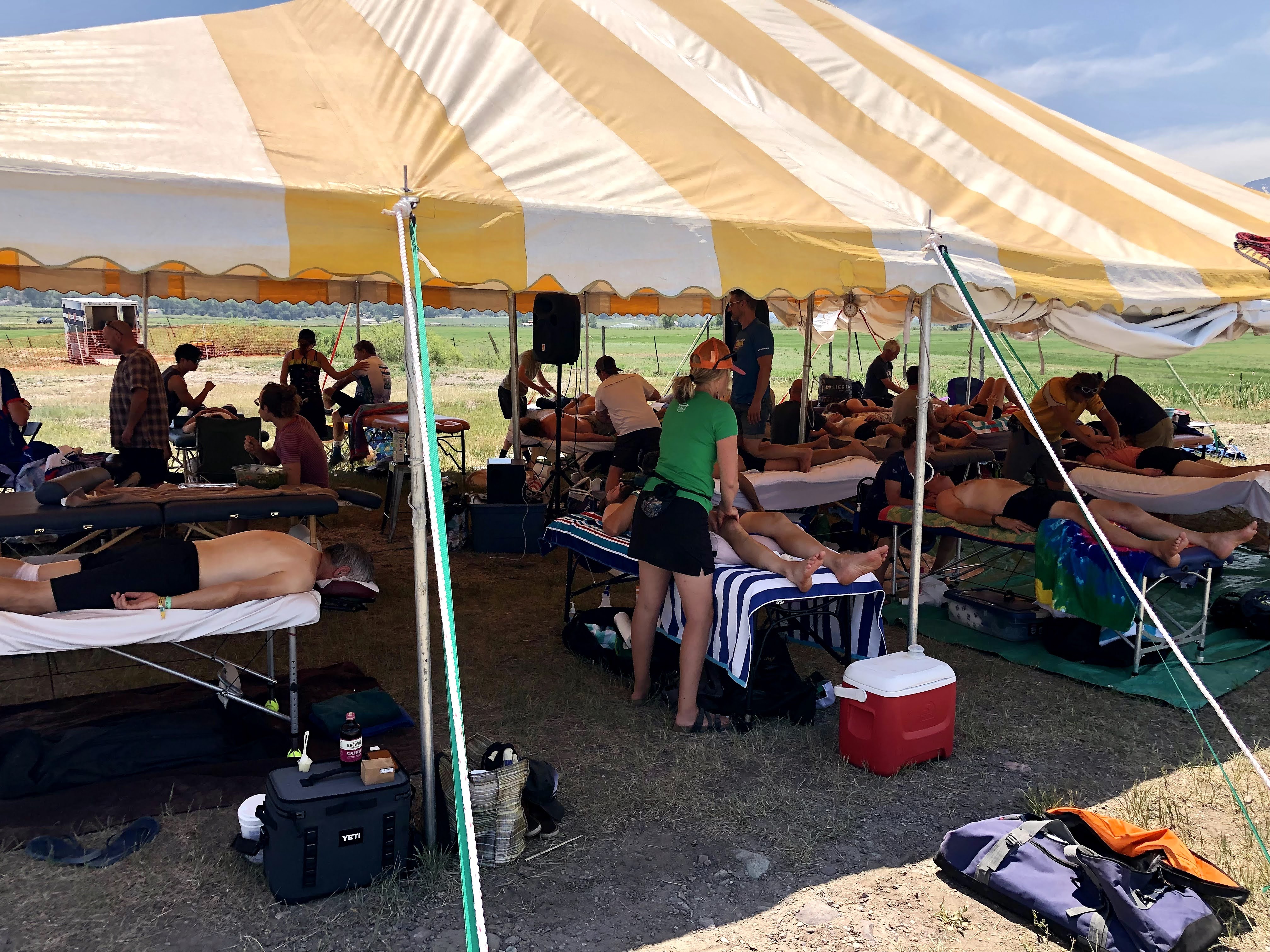 I was walking to the shower trucks when I noticed a tent that I had not noticed before, and so I detoured straight for it. It was filled with a lot masseurs and they, of course, were giving massages. Wow! Why hadn’t I found this a couple of days ago? I went right to the reservation desk and signed myself up. I would have enough time to shower, and then I would let someone give me a full body massage. No, they weren’t free massages, but they were a pretty good deal, and the method of payment? Venmo! I love Venmo. After my shower, I was assigned to Ashley who asked me what kind of a massage I was looking for. Deep tissue always works for me, so if she was willing, that was my preference. An hour later I arose a new human being. With a little rest, I would be 100% the next day, and since we were spending two nights in Ridgway, I was coming back for a half hour the next day.