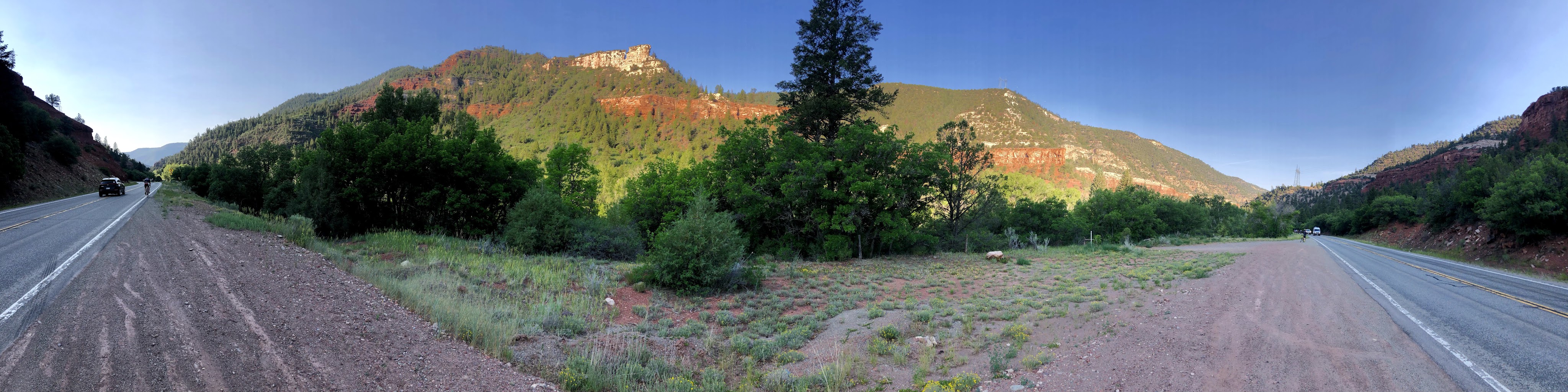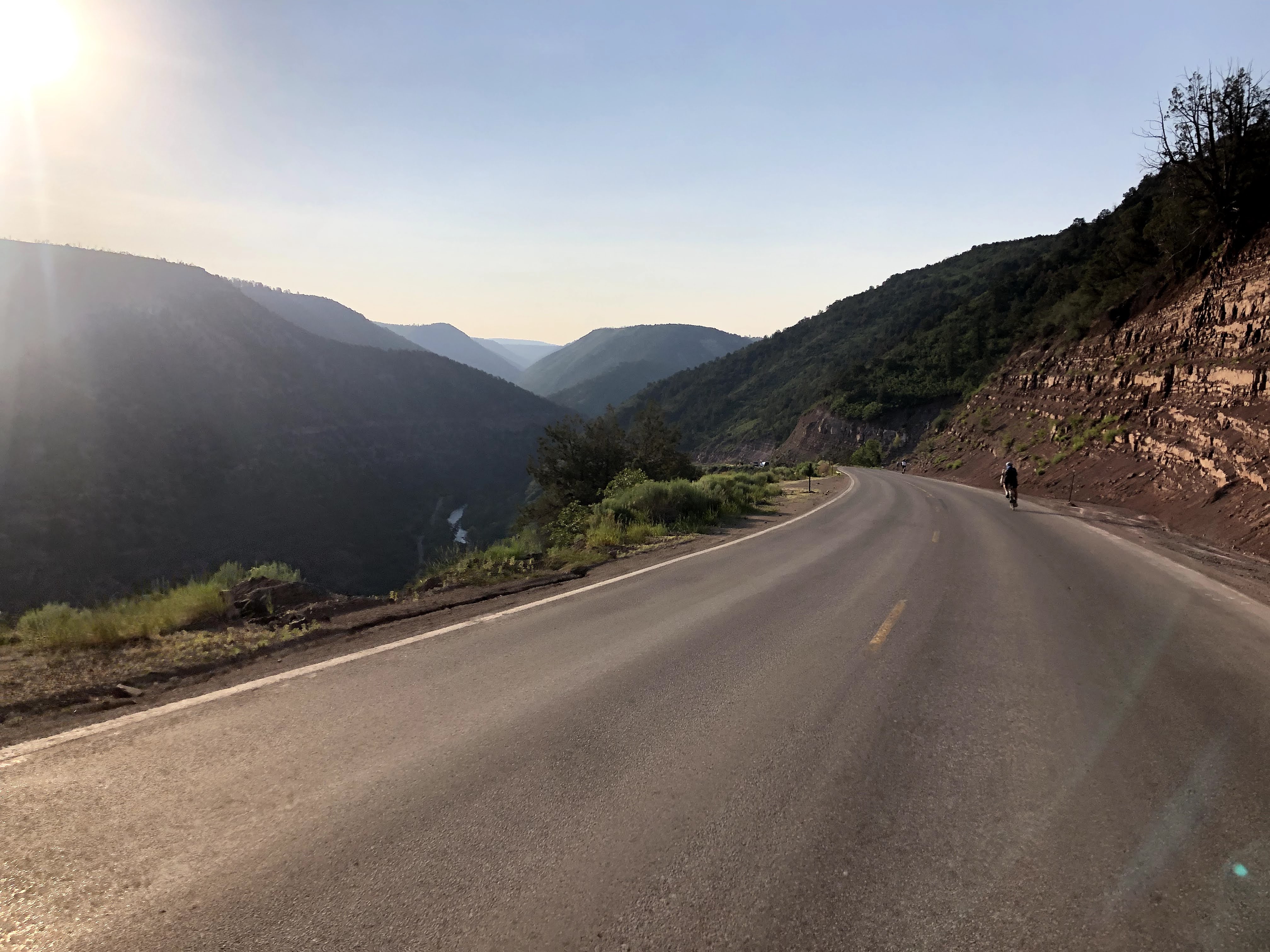 When I left you yesterday, we had finished the longest distance day of this years event. It was yet another day over 100 degrees, and there had been other challenges which are well documented in that post. My compatriots spent the night in Telluride, in the comfort of their hotels, and were 30 miles away. On the shuttle that would be at least 45 minutes, and if I could have talked to them, then I might have given them the benefit of waiting, but I was coffee’d up, I had broken my fast on my granola, I was packed, and my bags had been dropped off, and I was ready to ride, so while I could have waited, and maybe I should have waited, I did not, and off I rode, back towards the Norwood Descent. See, now that we were up upon the plateau, it is called the Norwood Descent.