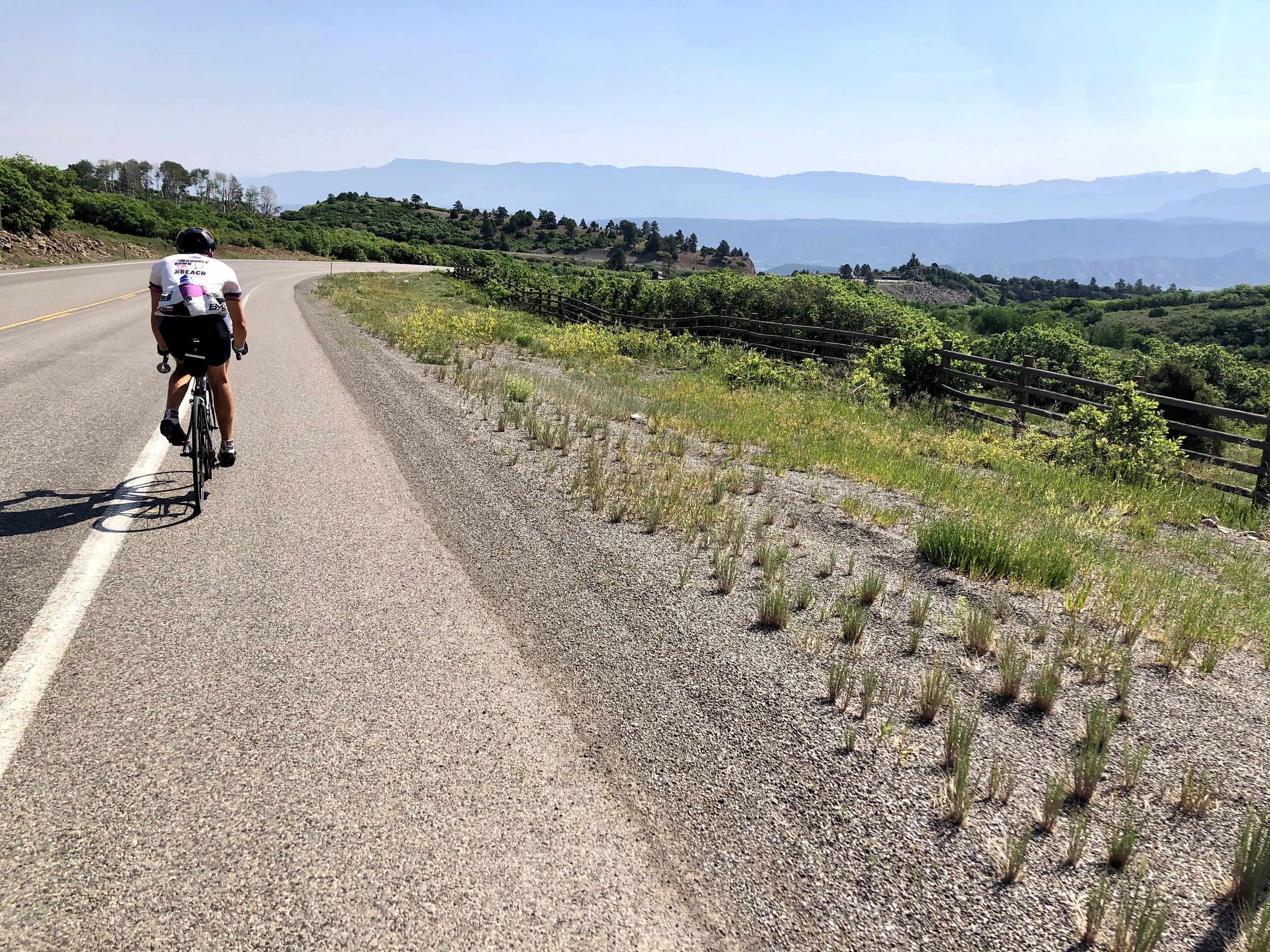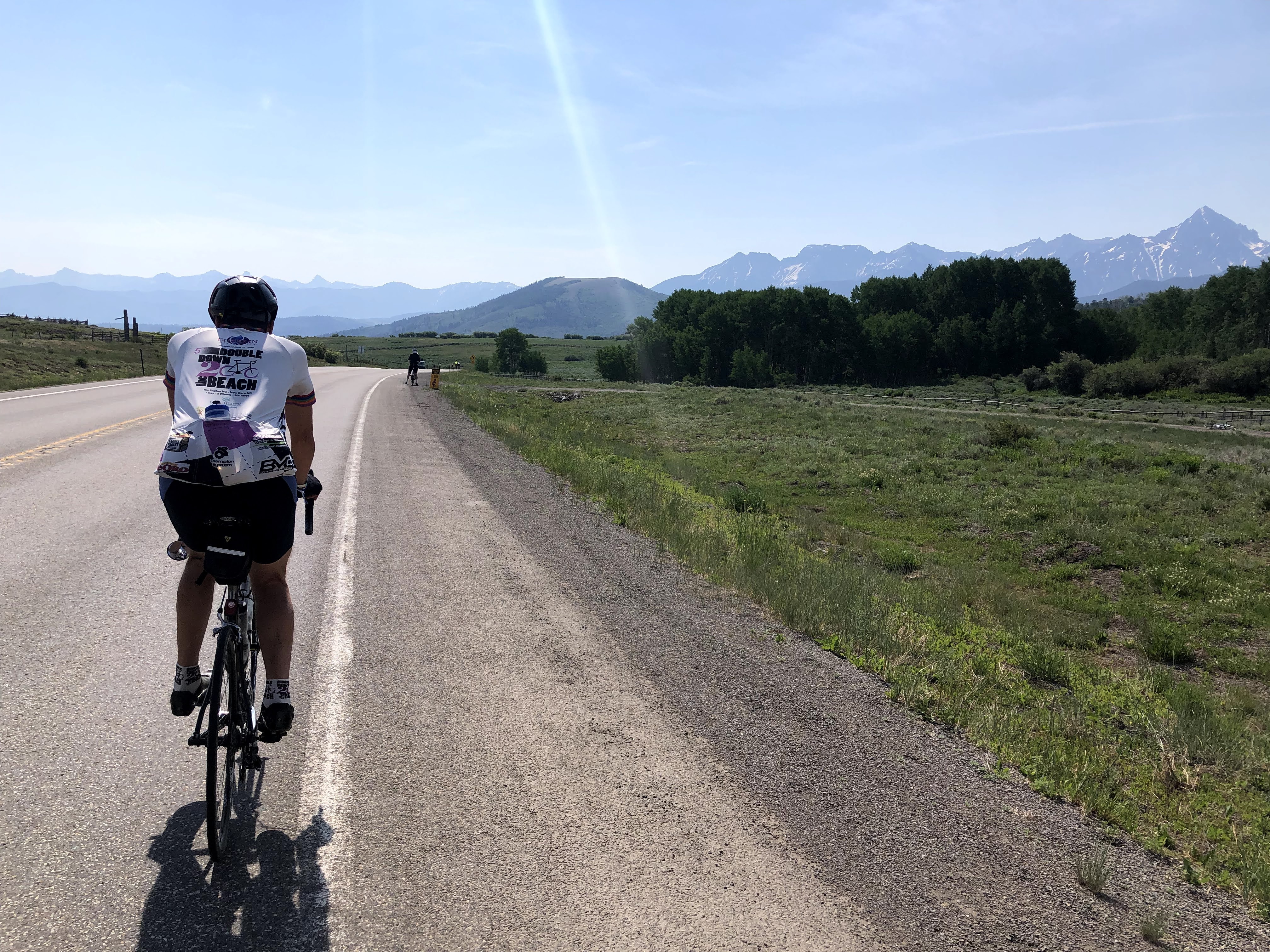 It was getting warm, and there was nothing to do, but go downhill and finish this ride. I think I might not have mentioned yesterday, but the mountains were really getting to be quite spectacular. Once we got over Lizard Head Pass, they took a dramatic change towards more rugged looking, and since it was June, most of the high peaks were still well covered in snow. Today was no different, and I later learned that we had moved into the San Juan’s, which is the same sub-range of the Rockies where I would be backpacking later in the Summer of 2021. As I write this now, that event came and went, and is in the queue to still be written up, but needless to say, the San Juan’s are quite ruggedly beautiful. There was also a quality about them, and maybe a familiarity that I couldn’t quite put my finger on at that moment.