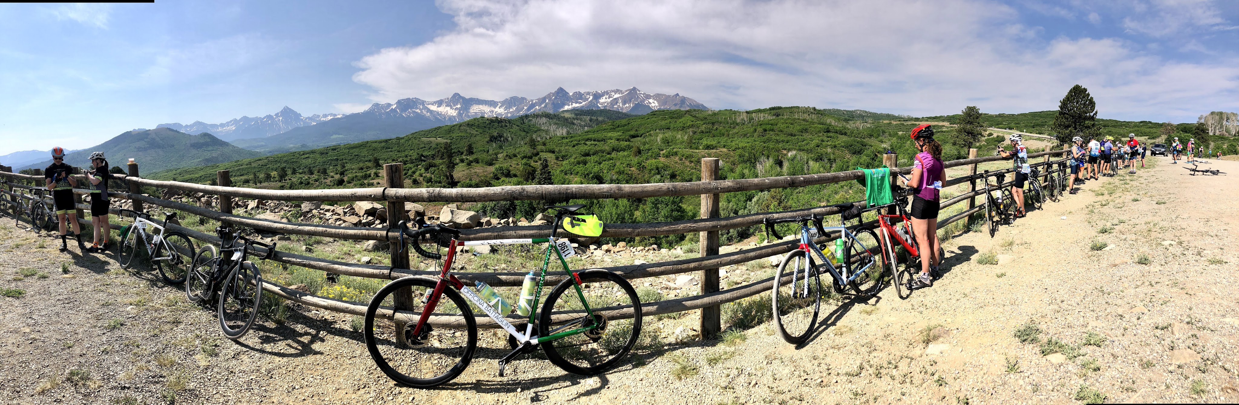 I parked my bike, and quickly got into line to get some grub. Sure I had my granola, but that was really more of a breakfast snack than it was a breakfast. I would break my vegan diet and have an egg burrito with onions and peppers, but no cheese, and no meat. They weren’t big, so they weren’t filling, and it was the right amount of food. With my water bottles topped off, I set off up the road. Since the Norwood Descent we had been climbing, and climbing more was the more morning chore. Today’s route was up and over another pass, and then a drop down into Ridgway. That is spelled correctly. I am guessing that somewhere in time, when they gathered to discuss a name, since the ‘e’ was already silent, they just decided why should they waste time writing a silent letter all the time, and so they chose to make it invisible too. So Ridgway was born.