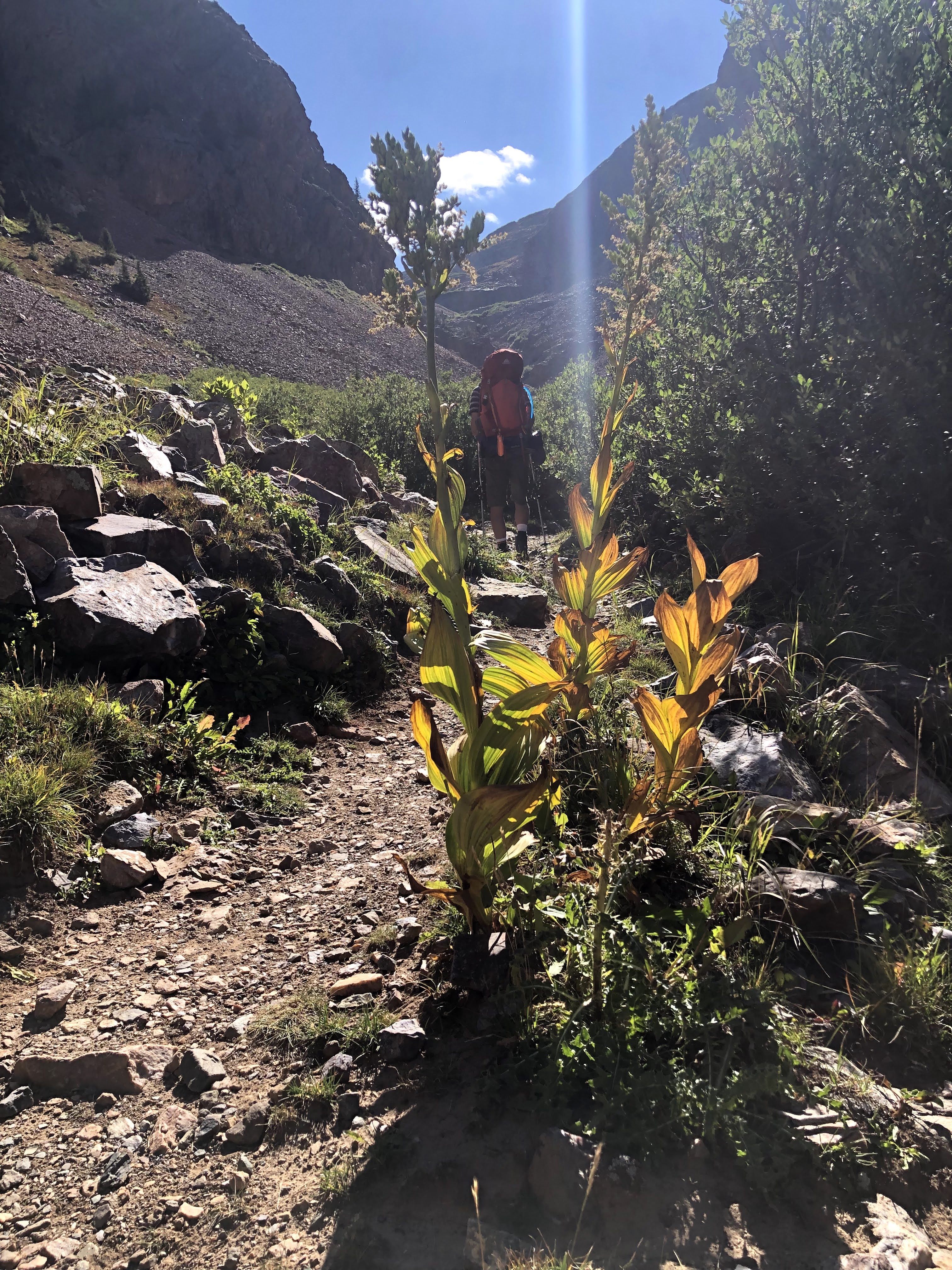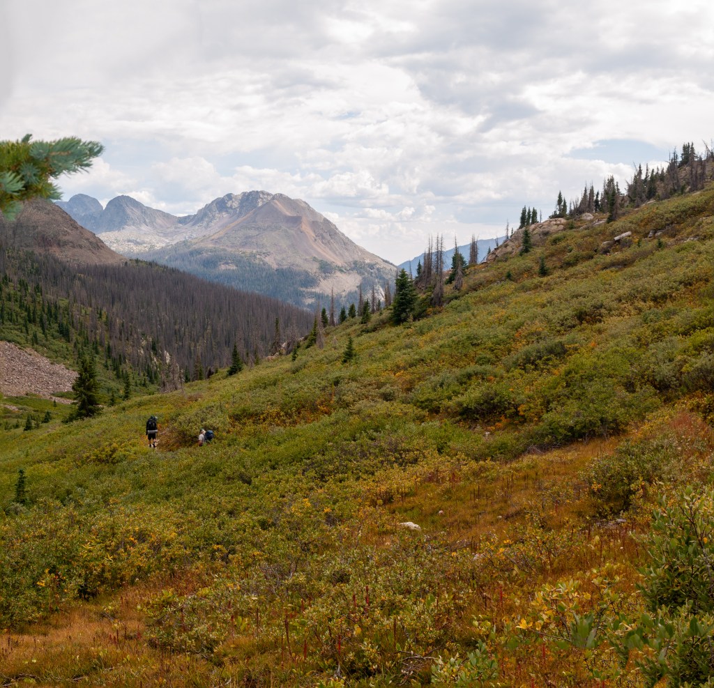 It’s been awhile since I last climbed the Continental Divide under my own power. I crossed it as a bus passenger in June, but that doesn’t count in my book. We were in the Pacific drainage when we both started and ended this day, but we hiked in the Atlantic drainage for a short while, which meant that we had two passes ahead of us. I can’t find a name for the first pass, and maybe there is a definition of “Pass” that I am unaware of that this first “Pass” doesn’t meet, but I feel like if I cross from one side to the other, say from one valley to another, that is a pass. The second for our day would be Hunchback Pass. A real name.