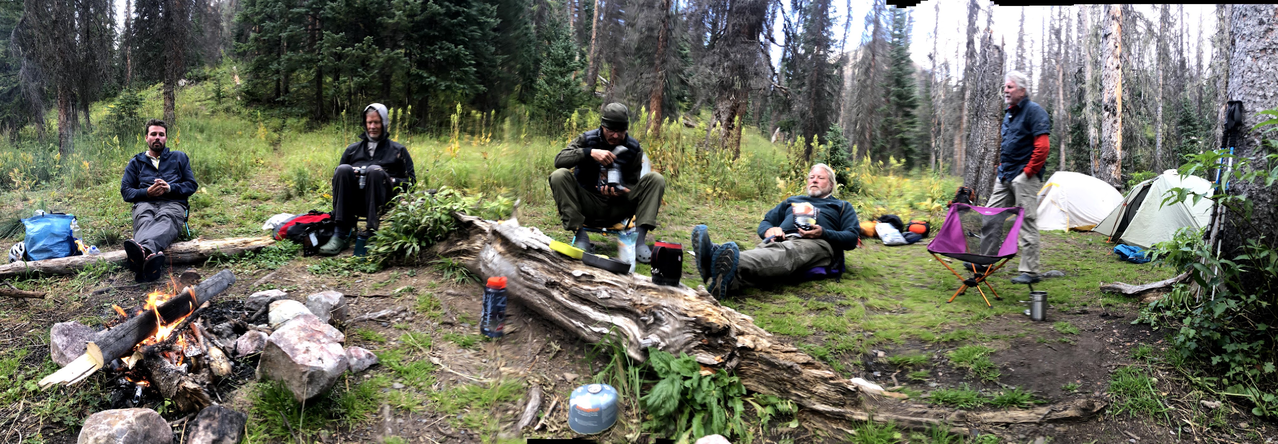 Our goal for the day was to find an established site inside the tree line. I think it would be one of those “We will know it when we see it”, however as I stopped for pictures, I was the last in our party, and I do recall that I passed through a very nice site that they had decided wasn’t right. I think what they thought was there was probably a nicer spot a little further down, and maybe it wasn’t apparent just how far water was. I found them a short while later at a site that wasn’t as nice as the last one, but had easy access to water, and plenty of level camp sites. Walt already had a fire going when I arrived, and after we did a little gathering, that fire was a decent blaze and we set down to enjoy the rest of the evening and discuss our options. The plan, that is the plan I made with inputs from previous trips, was to spend two nights here and day hike the next day. We were on the Vallecito between the CDT and Rock Creek and there was a nice loop trail that included a section of the CDT that has been described as “The Jewel Section of the CDT” (Sorry, no references) through Ute Lakes. I was very much interested in this, but though I plan these adventures, I exercise the full democratic ideal as they play out, and if the general consensus is to do something else, then that is what we will do.