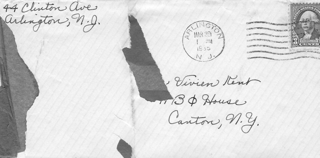 I believe Vivien had also just gained initiation into Pi Beta Phi (Pi Phi’s) Sorority, and was now living there on campus, so her address was: Miss Vivien Kent, Pi-Beta-Phi House, Canton, NY. and there was no zip code. In case you are wondering, yes Canton NY is way the heck up there in the cold barrens along the St Lawrence River North East of Lake Ontario.