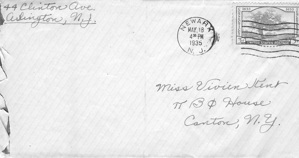 Whether there were, and I am sure there were, more letters between the last one written up, and this one I don’t have them. It’s implied in this letter that Elvin wrote every Friday night for a Saturday post, and potentially a Sunday read? I guess the United States Postal Service had weekend delivery in 1935. I, of course could be wrong, and maybe it takes a whole week to get to Northern NY, and Vivien gets these posts a week later. Until I come across a letter from Vivien to Elvin with some kind of acknowledgement, we won’t know.