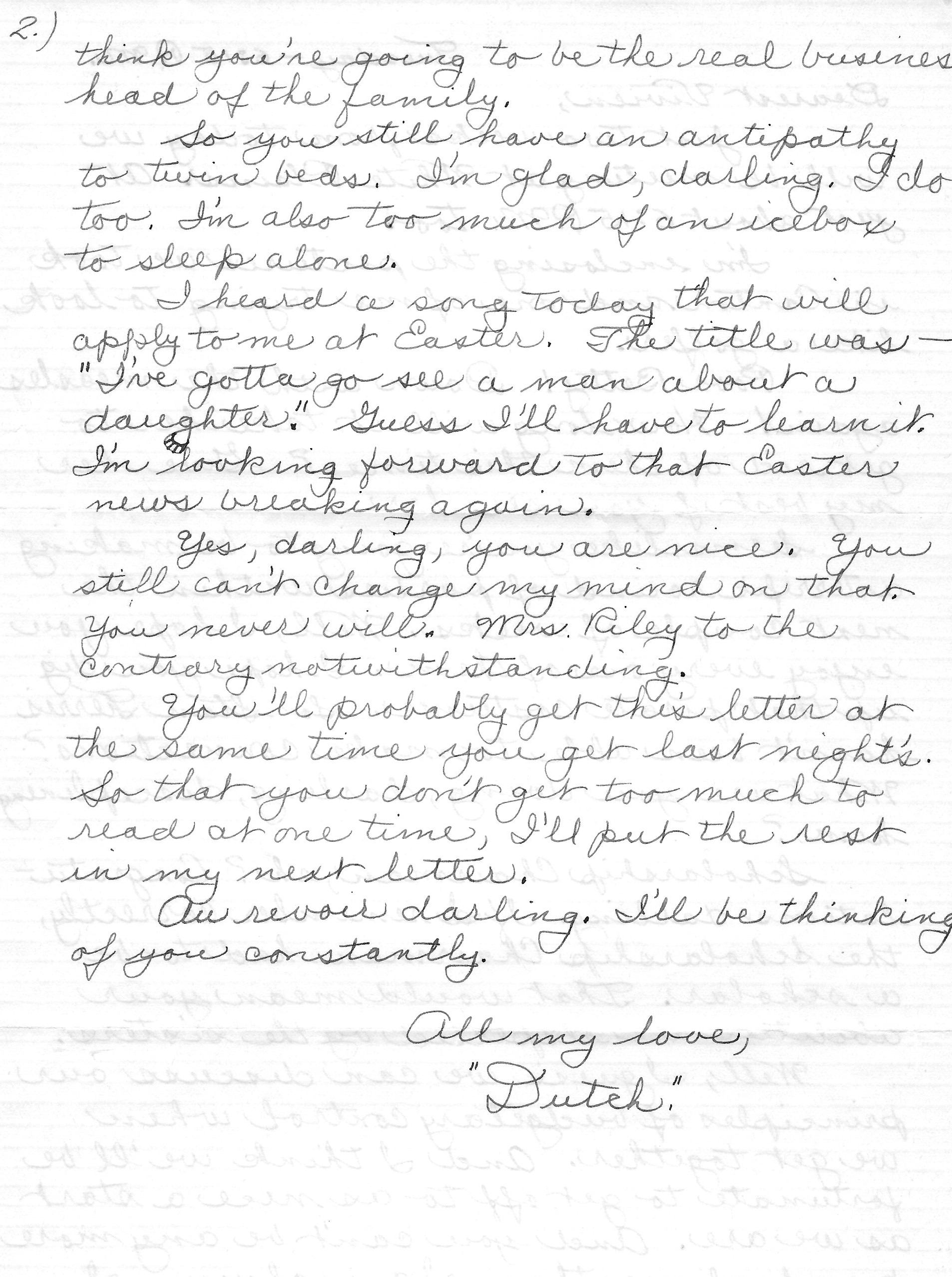 You’ll probably get this letter at the same time you get last night’s3. So that you don’t get too much to read at one time, I’ll put the rest in my next letter.