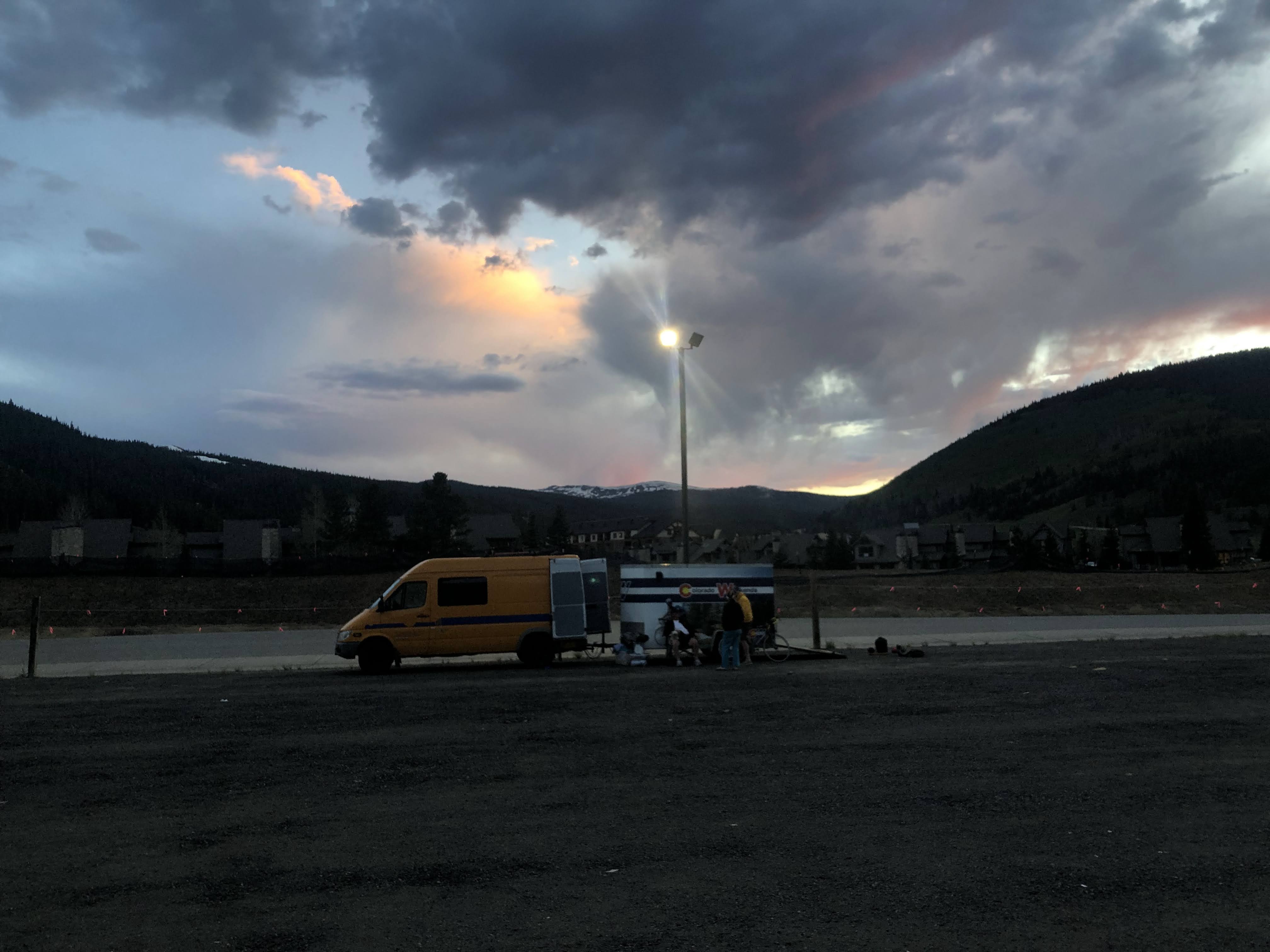 With everything tightly strapped on, and all the stuff loaded, we took a few parting selfies, boarded the RVs and pulled out. It would take about 2 hours to get to Copper Mountain. I remember Copper Mountain from The Triple Bypass I rode way back in 2003, when I was younger, and still riding my Landshark. Copper Mountain was on the way to the last pass of that ride, Vail Pass, where I was a completely overcooked noodle by that point in the ride with my thighs burning from lactic acid in my lowest possible gear. I honestly only remember the name Copper Mountain, and nothing about what it looks like, though I do remember all the Aspen and the bike path. Another memory from that trip was the Dinosaur road that I just happened to route a training ride through, and I recognized that after 19 years as we drove past it.