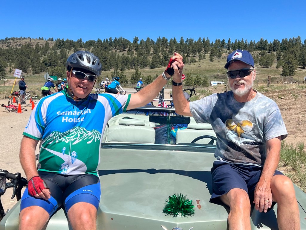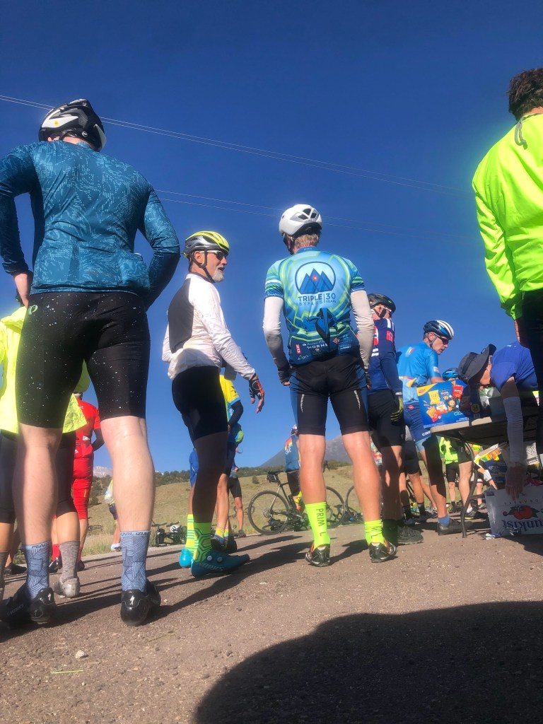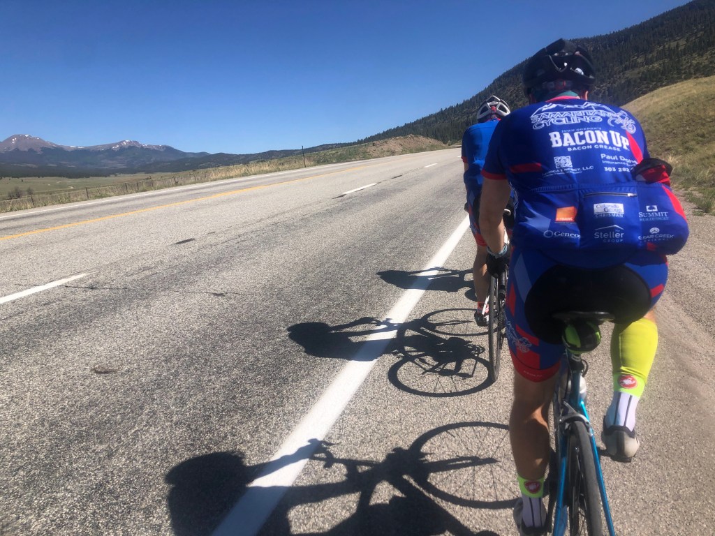 It stayed this way all the way into Fairplay where we finally egressed from 285 onto 9 which would mark the real climb to Hoosier, and our drop into Breckenridge. I was still moving, and to be honest I don’t think I got any worse as the day wore on. I was fatigued still, and the bad taste was still there. I spotted some Samaritan Cycling jerseys at a small shop in amongst an array of other various jerseys, and Ken was there, so I pulled in. He had downed a drink, and told me “the wait for food was looong”, and then checked to see how I felt and if I was going to stay or go. I chose to stay, and he went, but I didn’t stay long. The wait was indeed long, but that was for something cooked, so I bought a drink, and an energy bar and say outside talking to Roger while I refreshed. Again, I could taste the bar, so I am feeling like the whole day is just fatigue, and when I was done, I got back on and rode another mile when I ran into the 3rd Aid Station where I didn’t hesitate to get off the bike again. I found some pickle juice, topped off my water, used the facilities, and then set out.
