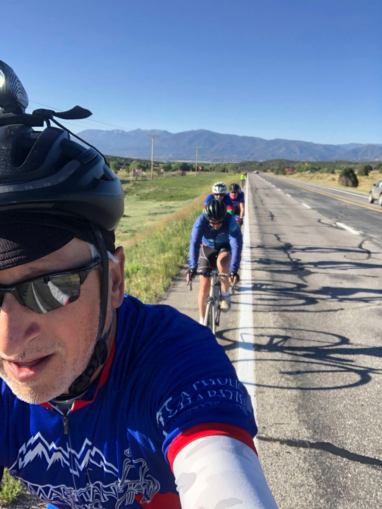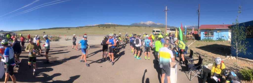 Ken showed up, so that was indeed one more, and we were set to roll out at 6:30. I texted Andy to see where he was, but didn’t get a response, and I didn’t have a text from him other than maybe an acknowledgement that we would be rolling out around 6:30. There weren’t any food trucks or food options at the Camping area in Salida, so we rolled out with whatever coffee drinks, and snacks we could jamb into our bellies. The first Aid Station was 18 miles into the ride, just between the “bump” and Buena Vista, so we would load up on whatever they had there before tackling the rest of the ride.