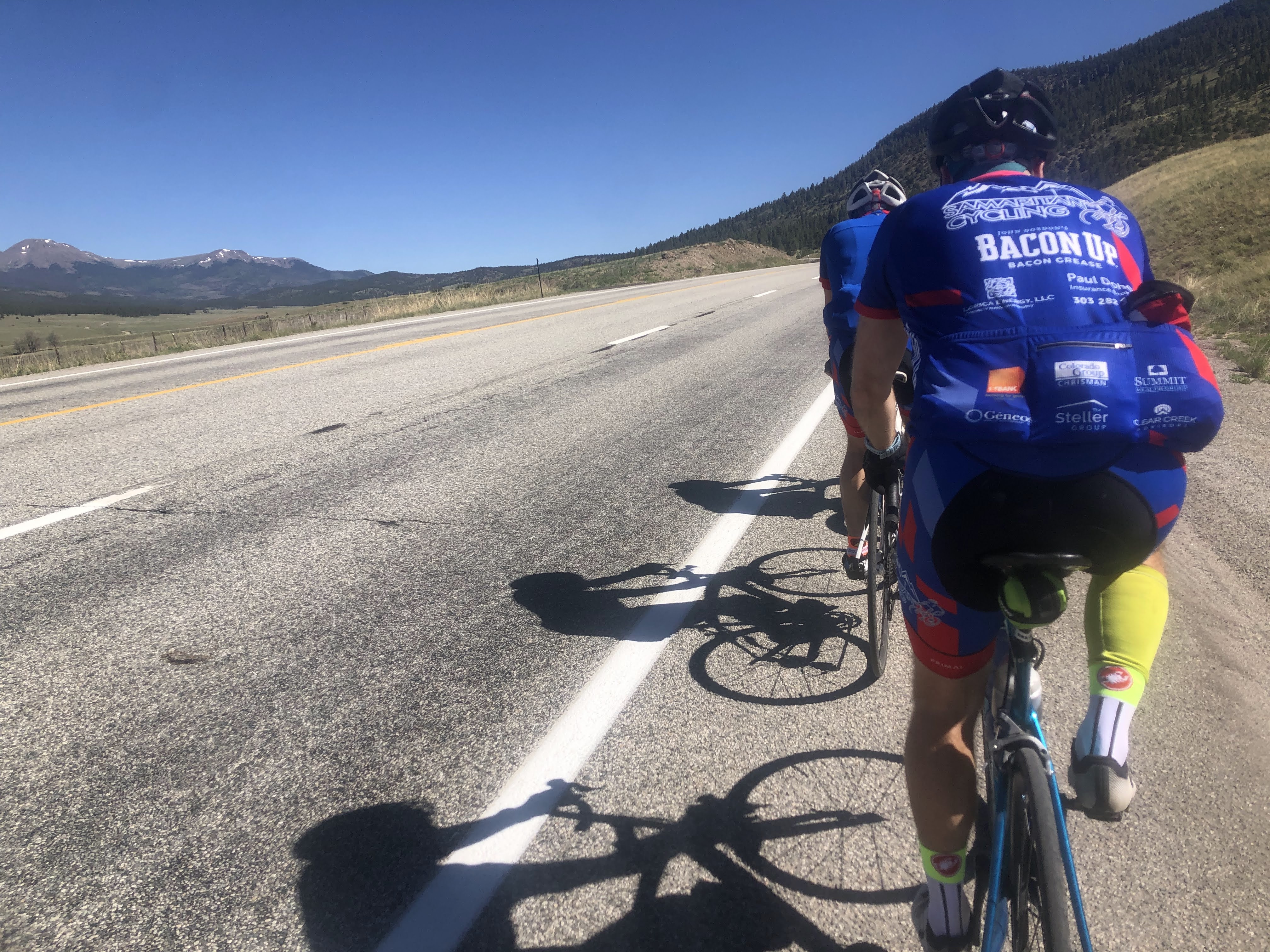 So, 285 was a shit show, and I wasn’t feeling myself. In fact whenever the road slanted up slightly, I started to slide out the back and eventually the gap grew and I was by myself, though I could always see my friends ahead of me. Not terribly far ahead either. Sometimes when the road leveled out for a spell, (remember we are gaining elevation as we ride North on our way to Hoosier Pass) I could make an effort and bridge back across. Po would tell me later that “It was just us, and the wind, and then I heard something that was different. At first I just thought I was hearing things, but then it got stronger and I could hear the opera arias above the noise of the wind. It was beautiful thing”. Of course, the next time the road went up again, I slid out the back again until they got ahead of some other riders and it was awhile before I saw them again. They had become dislodged from Ken as well. Maybe Ken just felt safer on that road on his own.