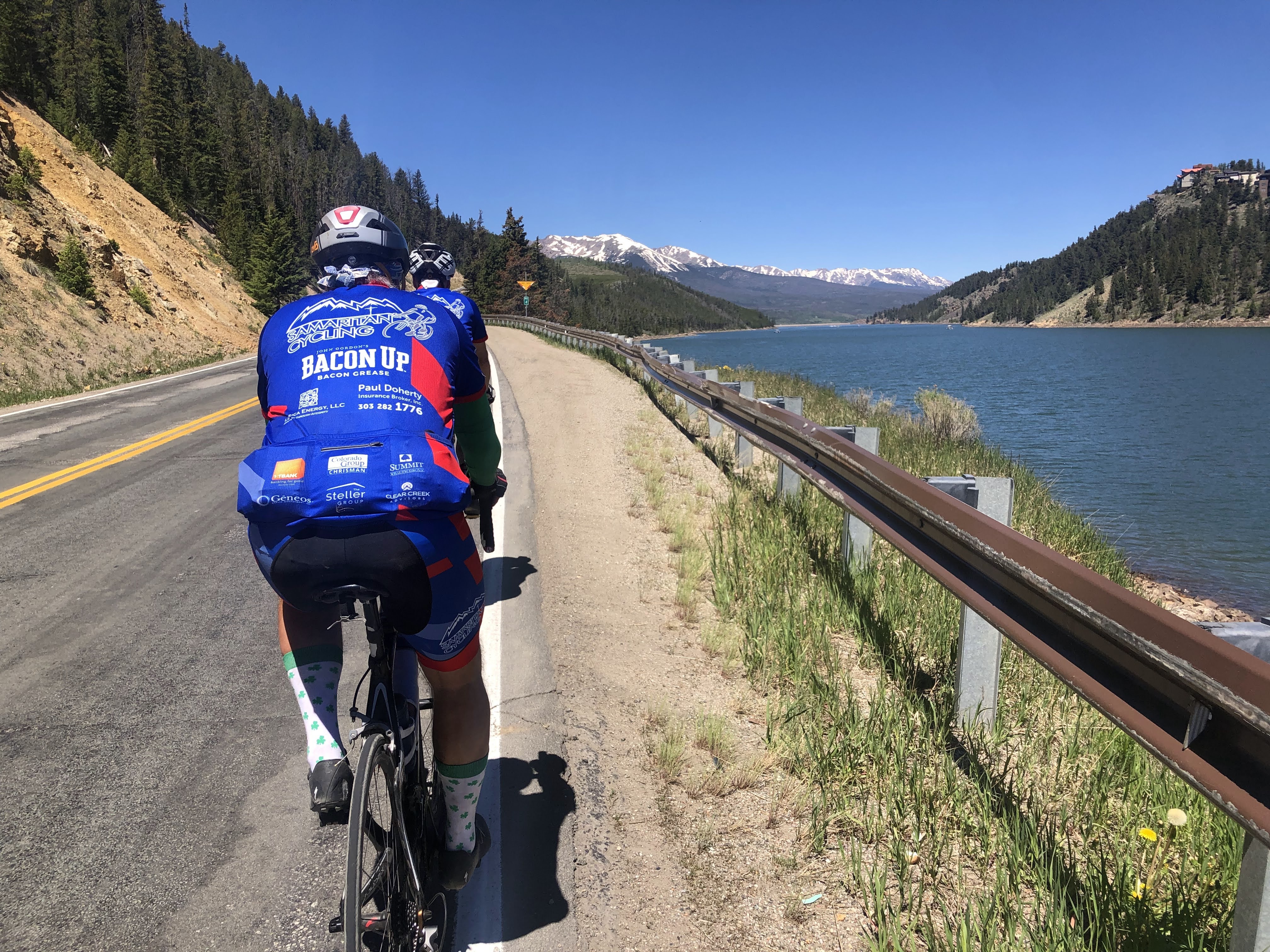 It was on this next section where I believe we encountered the best views of the Dillon reservoir against the backdrop of the mountains, and where we ran into Joe Tilman and Gina Calleo, two friends of mine from Jersey, who regularly use RTR to prepare themselves for the 200+ mile Longest Day Ride (No longer an organized ride) from the Northern tip of New Jersey to its Southern tip in Cape May. Tommy Dea and I stopped to chat, and we grabbed a few images together there before setting off again.