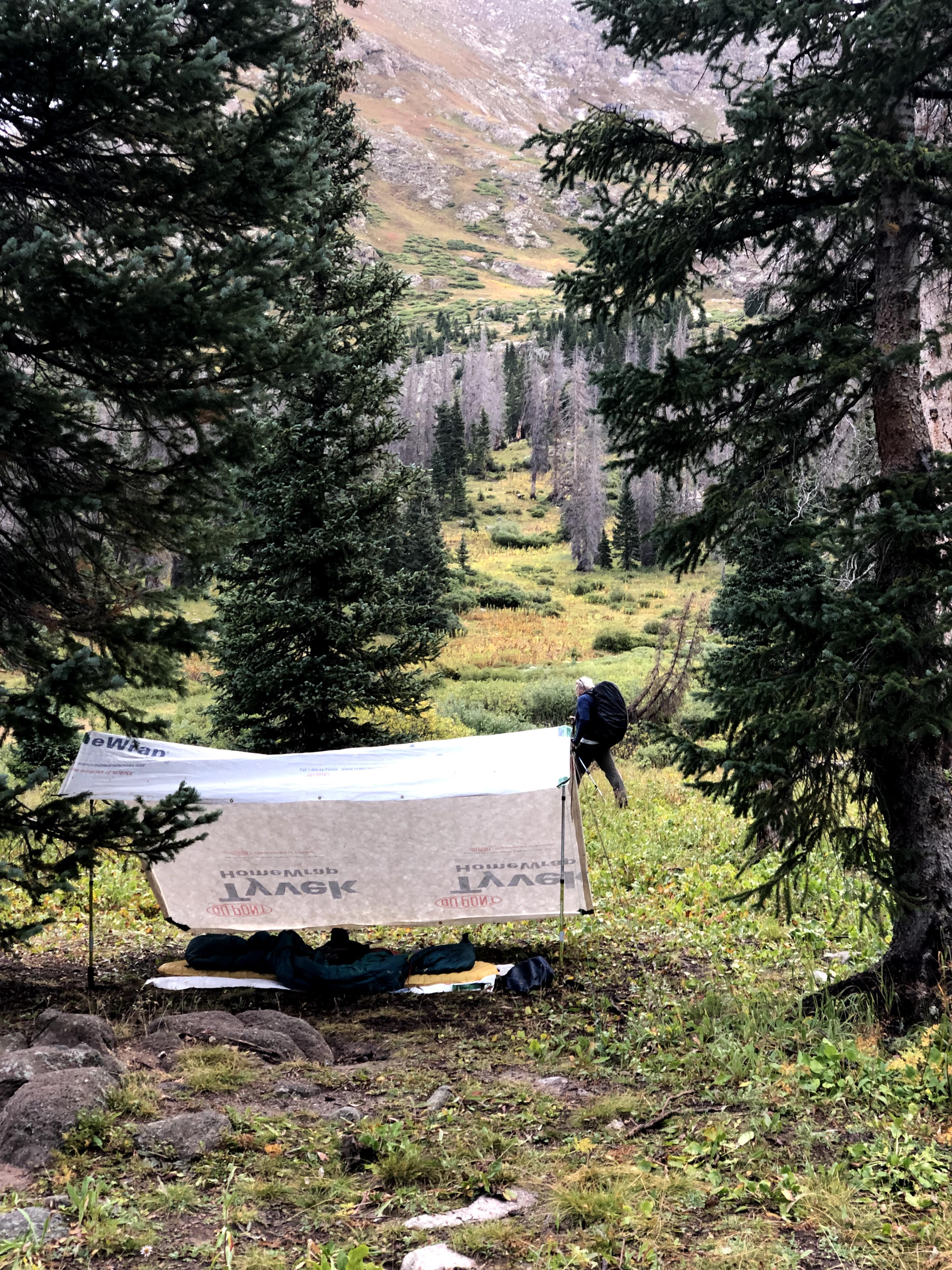 With dinner done, and the light fading we retrieved our now dryer stuff, and everyone turned in for the night. With no fire, it gets cold camping out at almost 11,700′ of elevation in early September. It sleeted on us earlier in the day. A warm sleeping bag is preferable to shivering.