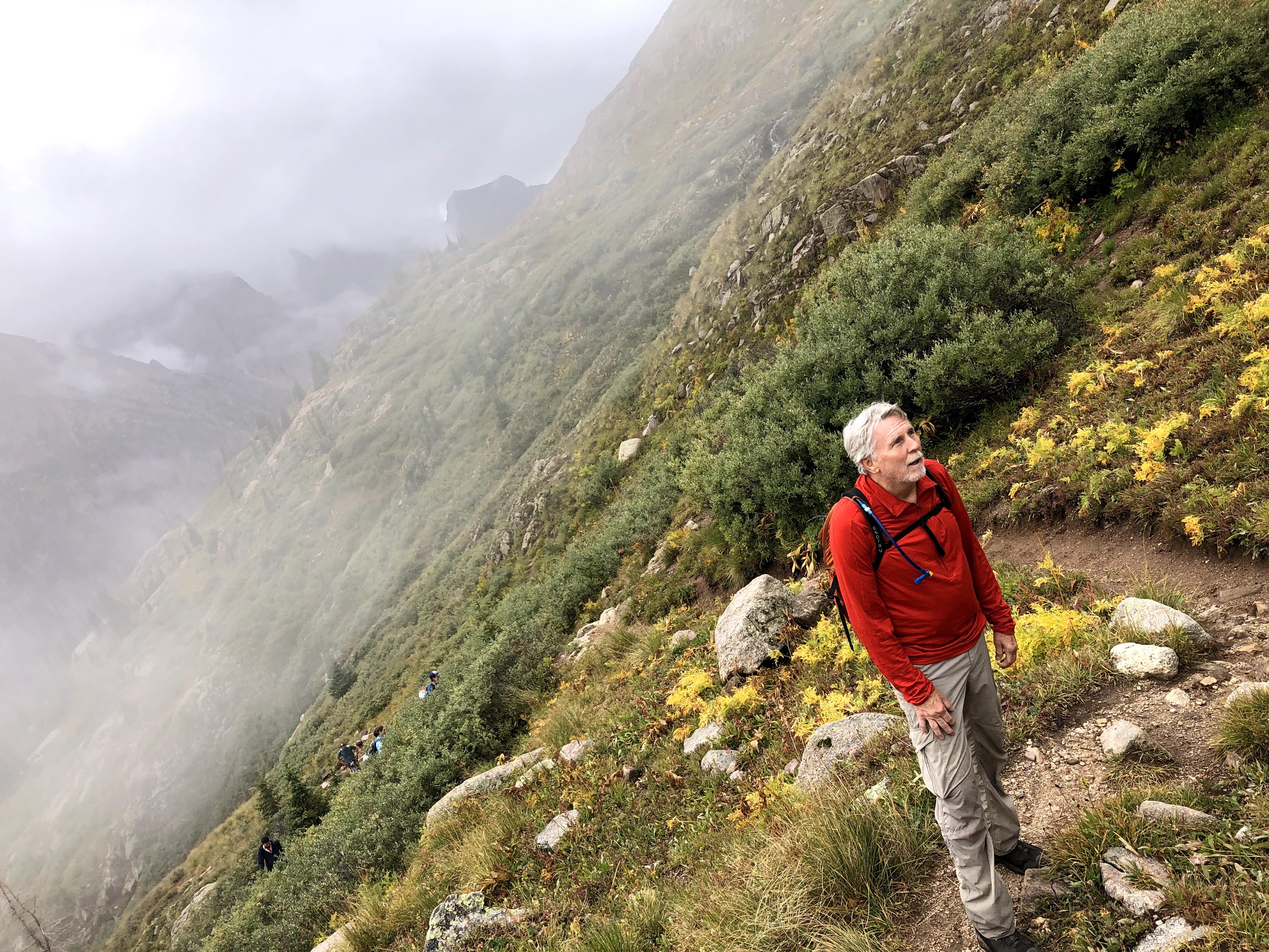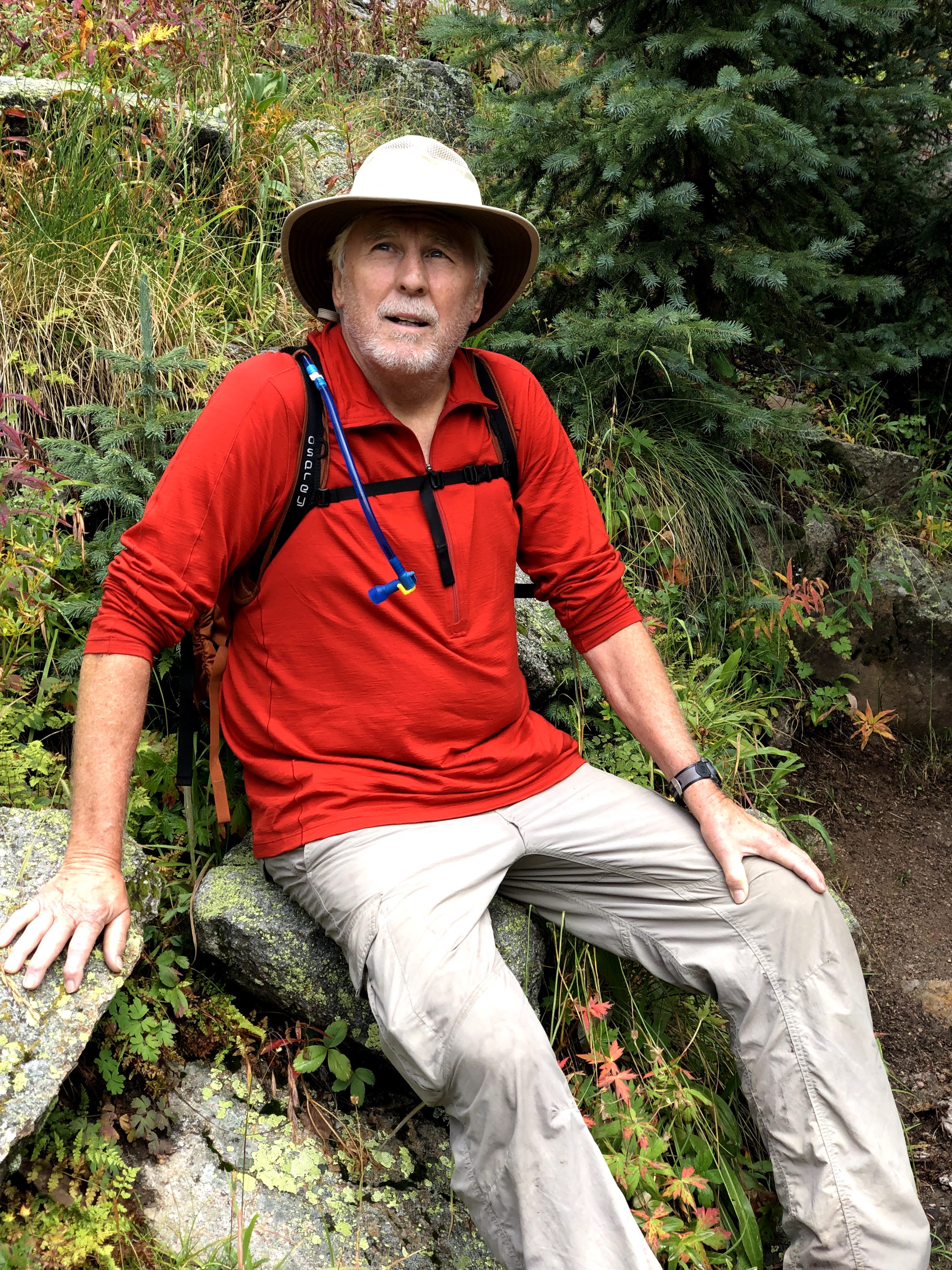 Kevin was my shadow on most of this climb, never more than a switchback behind me. Dan was often next in the queue with Paul and Jim bringing up the rear. I never got too far ahead that we couldn’t always see the entire team covering more than a couple of switchbacks, and I took frequent (as in needed) breaks. Hike at your own pace is how we go. Rest when you need rest.