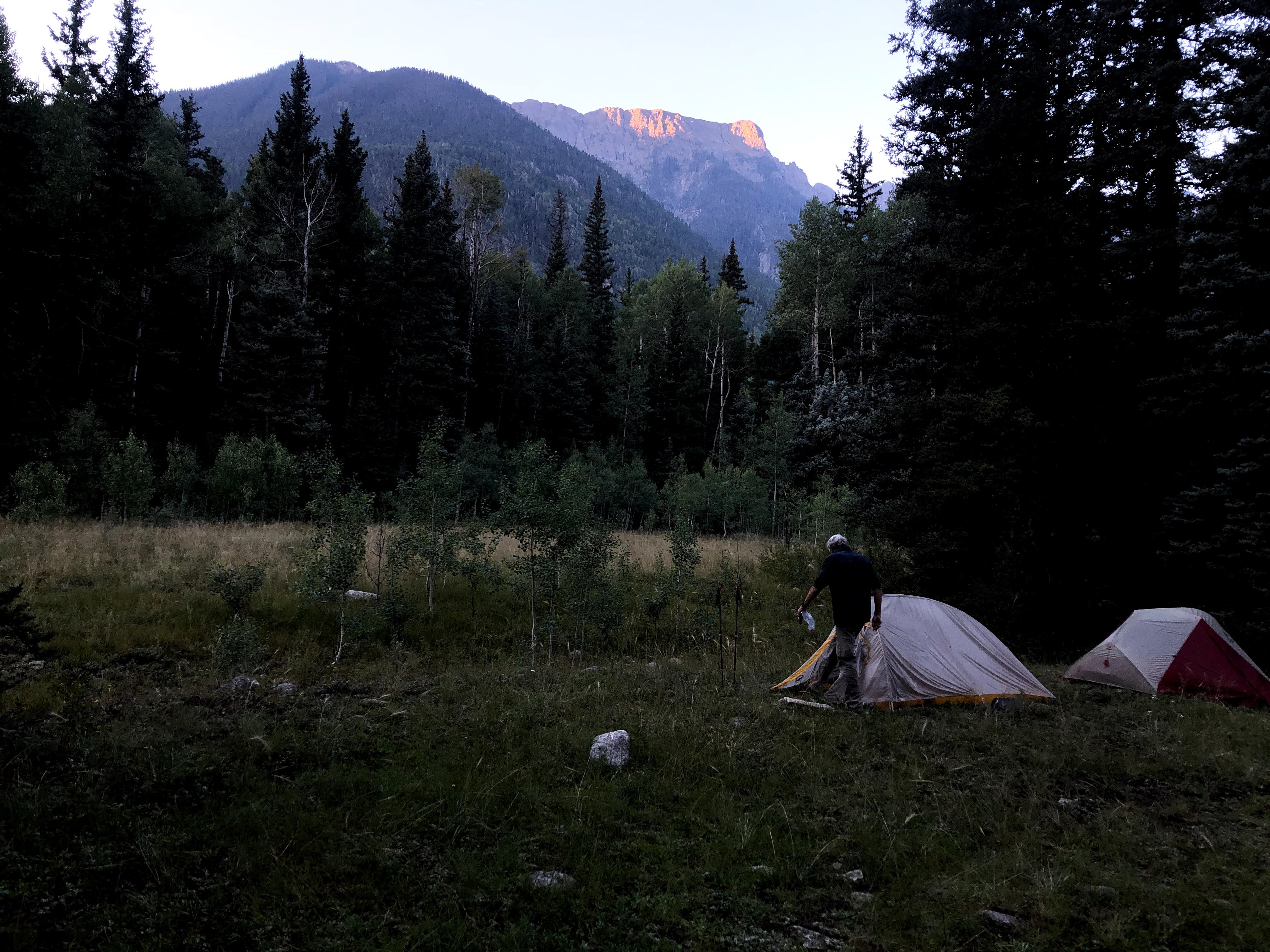 There wasn’t a lot of hiking today, but I took a shitload of images to share. If I didn’t mention it, I decided to return to the Weminuche this year, same timeframe, with anyone that wanted to come which included all those who missed this trip. As it turns out, those will be my only companions unless any of the Warners join us at some point. This trip could not have gone better. It was a great group. We had fantastic weather except for maybe that one day of scattered rain. We summitted a 14er. We were out for 8 days. No one got hurt. A slight caveat to that last statement as Dan actually ended up in the hospital the next day with a kidney stone. He got as far as the airport before he decided to, or was forced to abandon his flight. None of us knew this until we were all home. Lucky for Dan, and us that we were out of the back country. We could have tested the SOS function on my Garmin device, but better not to need to. Dan is fine.