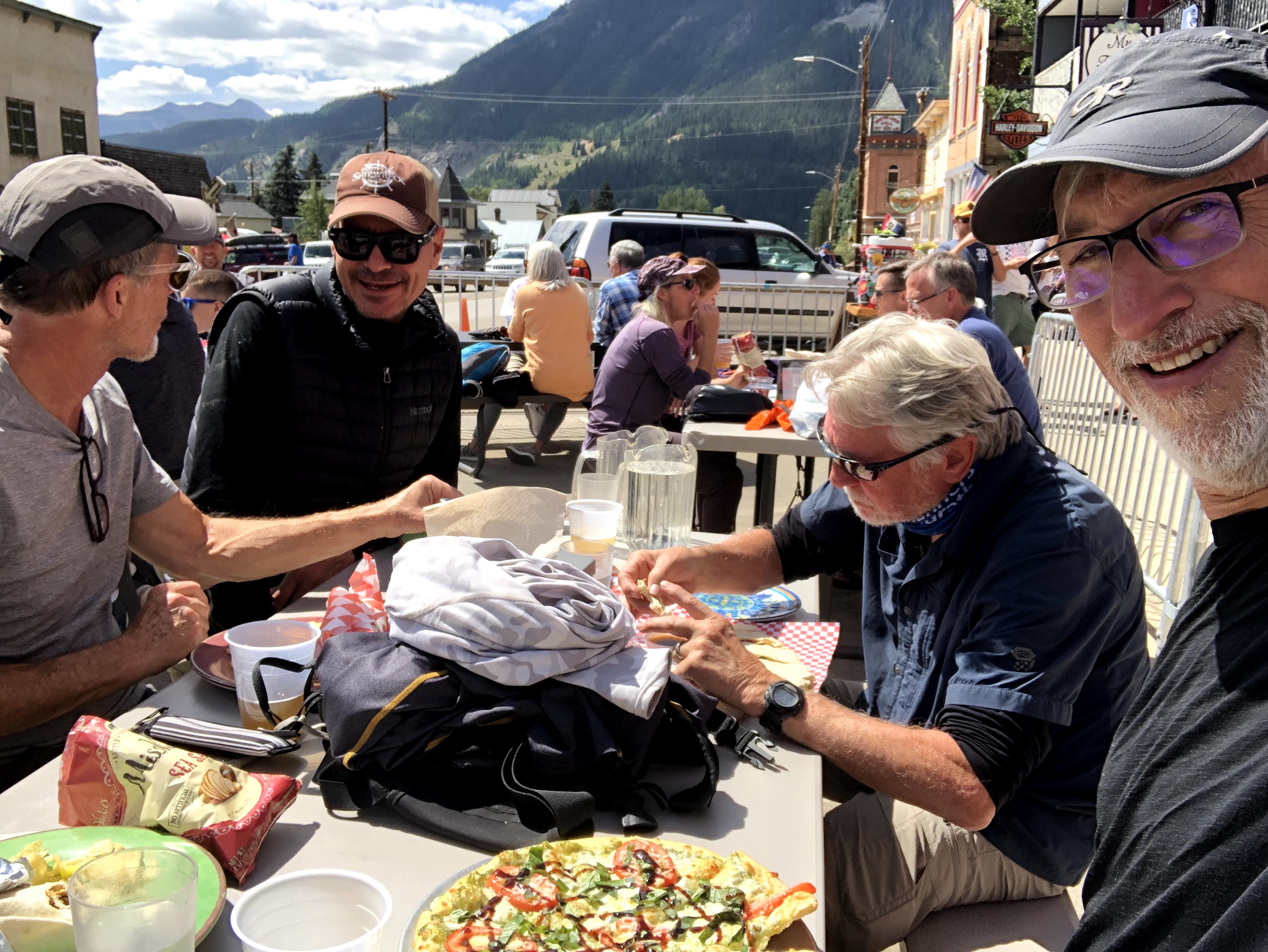 While we were hanging out, two younger-than-us gents walked in and occupied some space near us, and before long we were chatting up Kris Warner, and Blake Kaplan, friends for a long time, both originally (?) from the great state of Ohio, but Kris now lives and works out of Durango, and Blake was out visiting for a long Labor Day Weekend in the Weminuche. We were all doing the same thing, as in boarding Needleton to go to Silverton, however Kris’s wife would meet them there for the drive back to Durango. If I recall our conversation, I believe they managed all four of the peaks and were getting out before the real crush of weekend visitors moves in. It was Saturday morning, and while you might think everyone came in on Friday, you would be wrong. Another bit of intel we got from Kris was where we should seek lunch and that suggestion was Avalanche Brewing Company right on the main drag. We should easily have enough time to find it, take care of lunch, and still have some time to walk around town before re-boarding for the trip back to Durango.