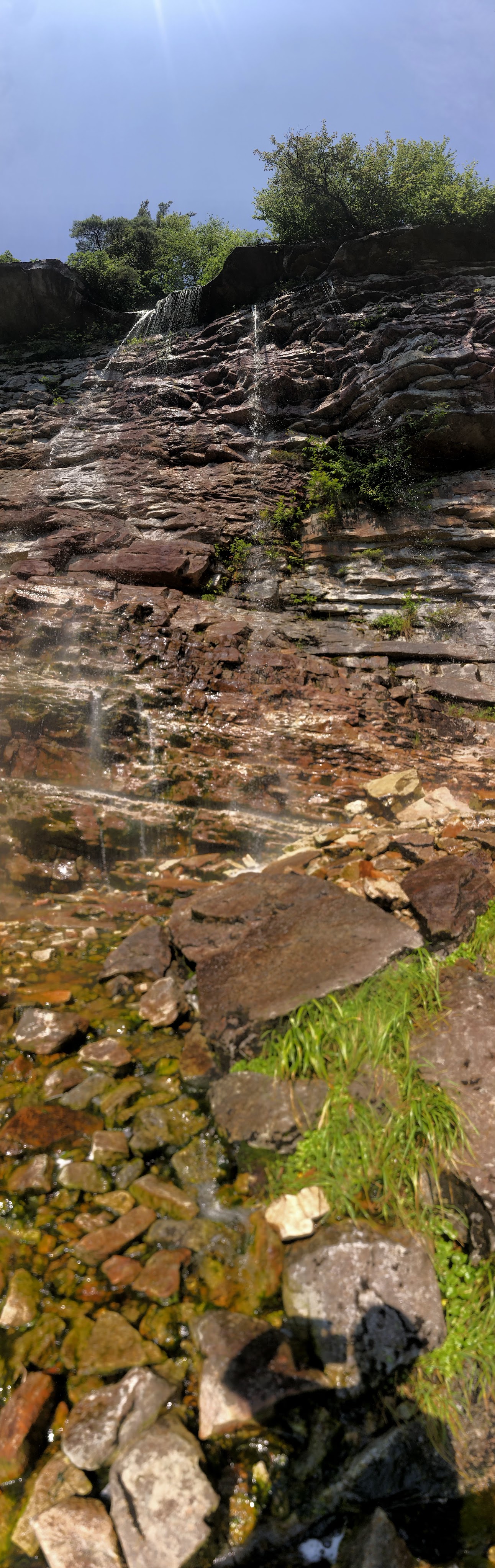 While we had the falls to ourselves I snapped a 19 image composite to assemble later, as well as a few “live” iphone images taken in a way such that I would be able to turn each of them into a “Long Exposure” thus turning the still water into flow images. Then later at home I would attempt to stitch those together into a vertical panorama showing the flow rather than still water. That experiment was actually successful, and is the image at the top of the page.