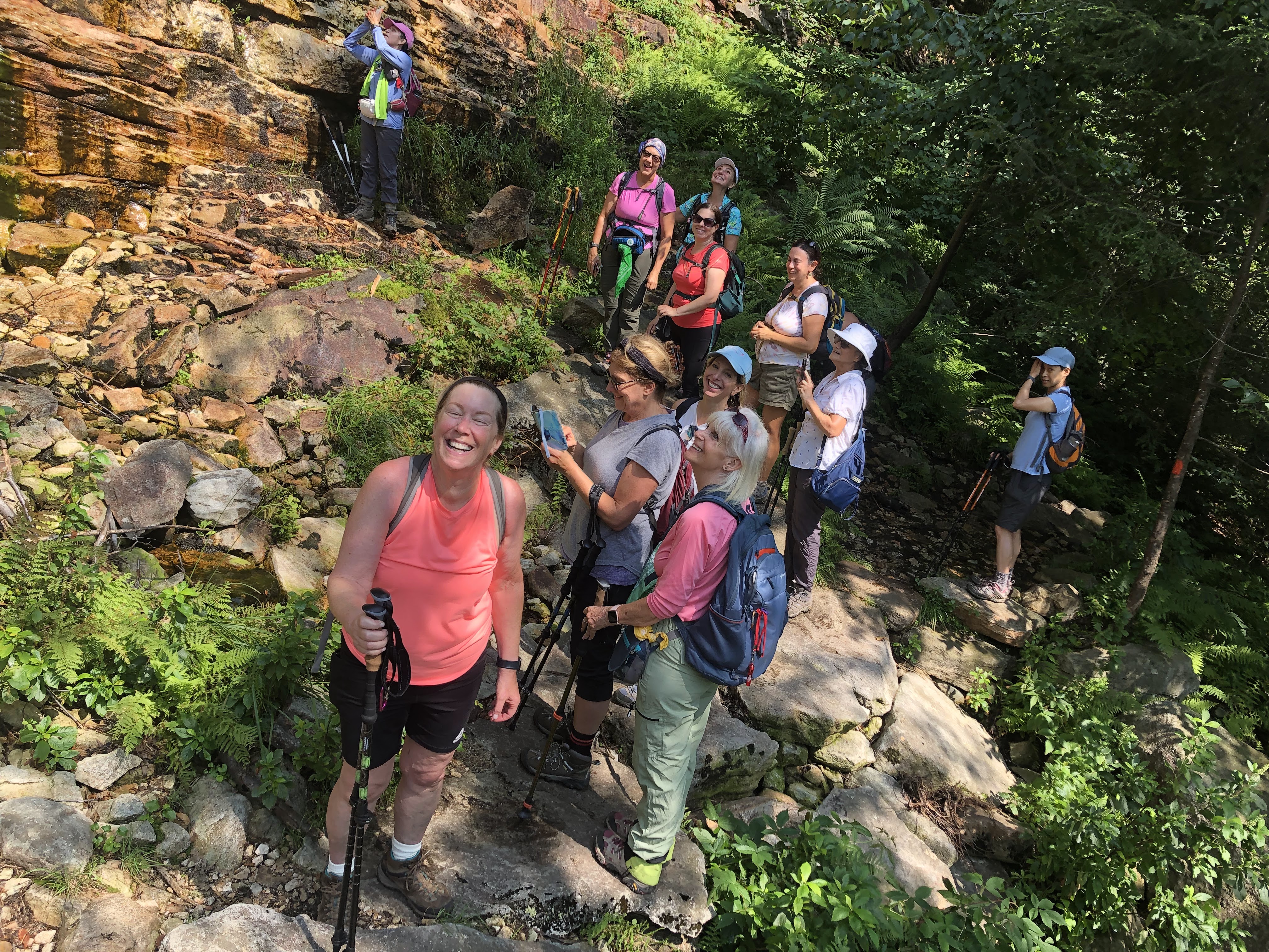 One highlight of the hike was Rainbow Falls (1st image on this page). First highlight is it was flowing, and not just a trickle either. It wasn’t a Spring thaw flow, but recent rains were working their way down the watershed, and that produced images worth visiting. The hike took us right past it, so it was hit or miss if there would be water, but since we came upon it from up high, we could already hear it before we climbed down to bear witness. We actually had the falls to ourselves for quite a while until a group of 13 Estrogen-Based life forms hiked in from the carriage trail access. While I took my own “drone” shots of them, I took possession of two of their iPhone cameras to capture images of them at the falls. Happy they were, and we left.