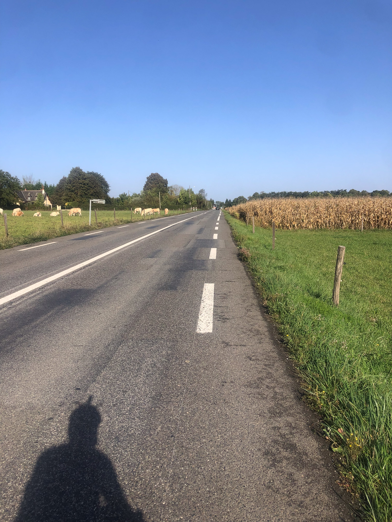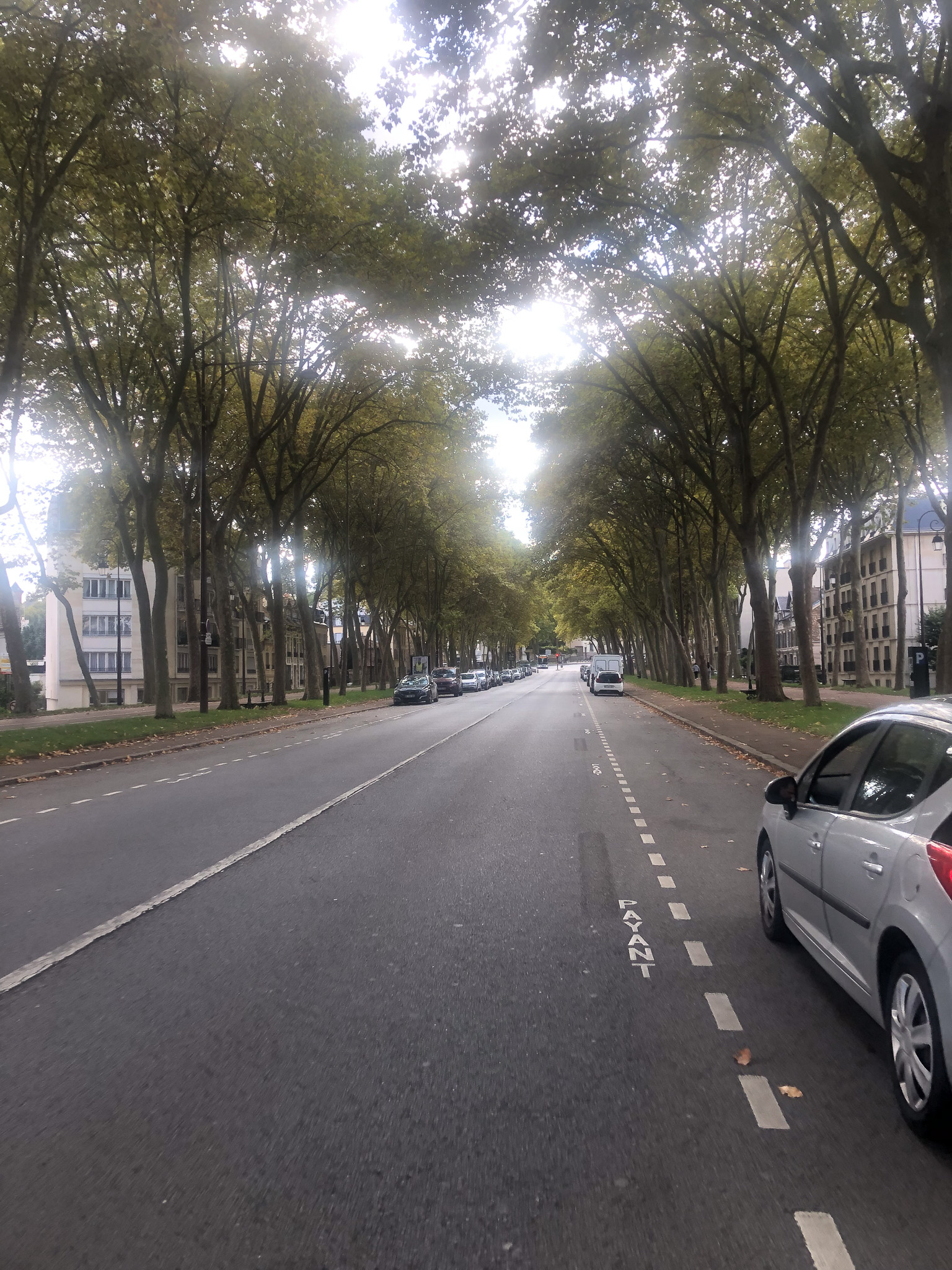 There were a few glitches along the way. Paris is a city, that like any city, it was late to the bicycle lane adaptation party. I was doing fine for awhile, but then I hit a detour, and after a re-route ended up in some park on a hill where I was sure there was a better way, but I didn’t have the luxury of time on my side, so I pushed forward. I think I was actually riding on dirt in a park for a short distance before I assured myself I was still moving toward Plaisir. At one point I was riding straight towards a giant tourist trap. It was called Versailles, and I don’t know why my route went through Versailles, but I audibled and rode around it, again re-routing. On the other side, I was in another park, but I wasn’t really all that far, maybe another 10k so I kept going where the route line and the turn-by-turn was taking me. I wasn’t doing too bad on time, and after some nifty bike paths got me over a major controlled access road, I was in Plaisir, and just like that I found Yann’s driveway, dismounted and walked in. He was loading his car when I approached and we hugged after 50 years. I was 12 the last time we had met, and now I was 62. There was enough time for me to shower, and put on my non-cycling clothes, and I took the wheels off my bike, and we packed it into his car, and then off the Caen we went.