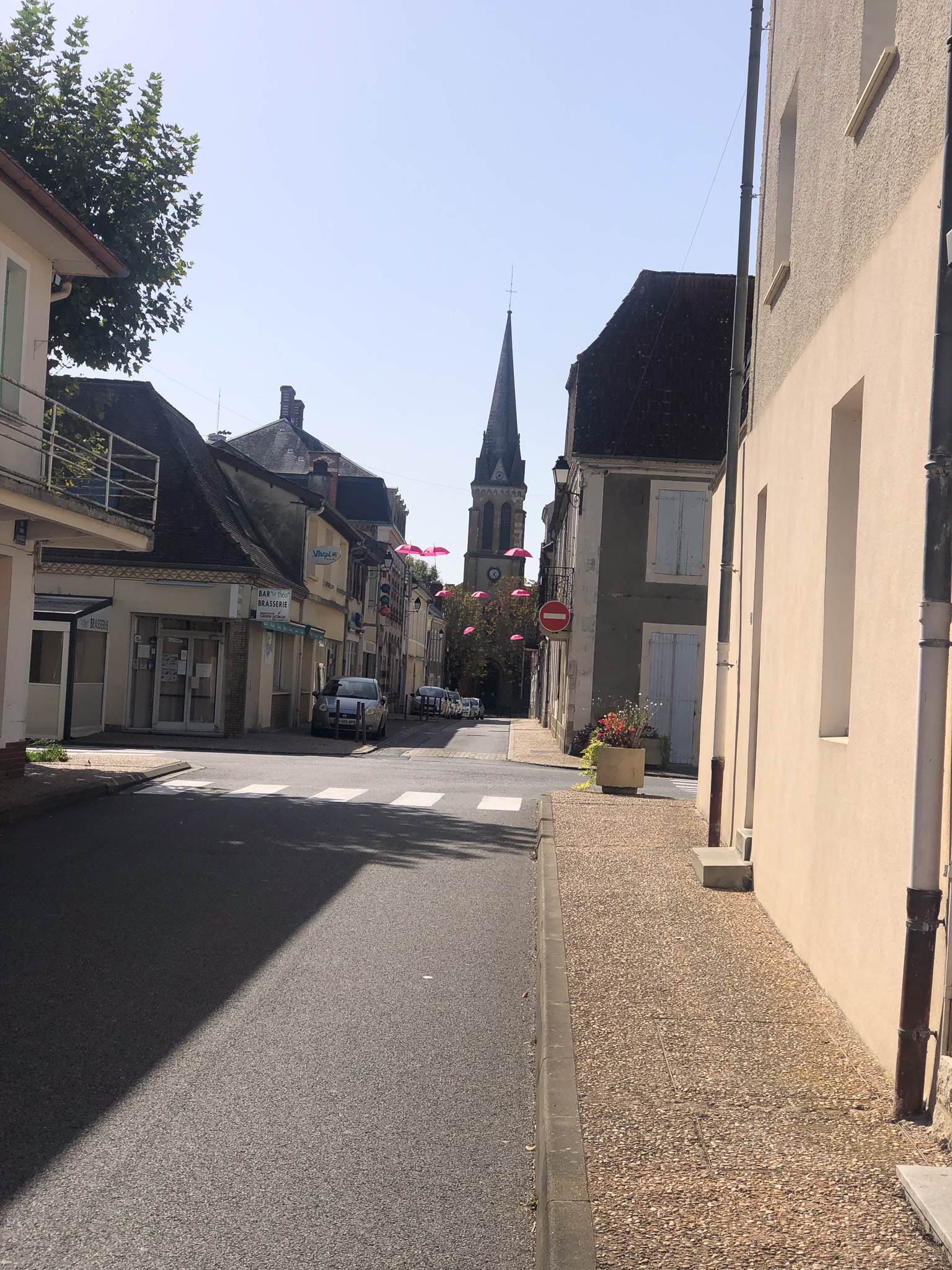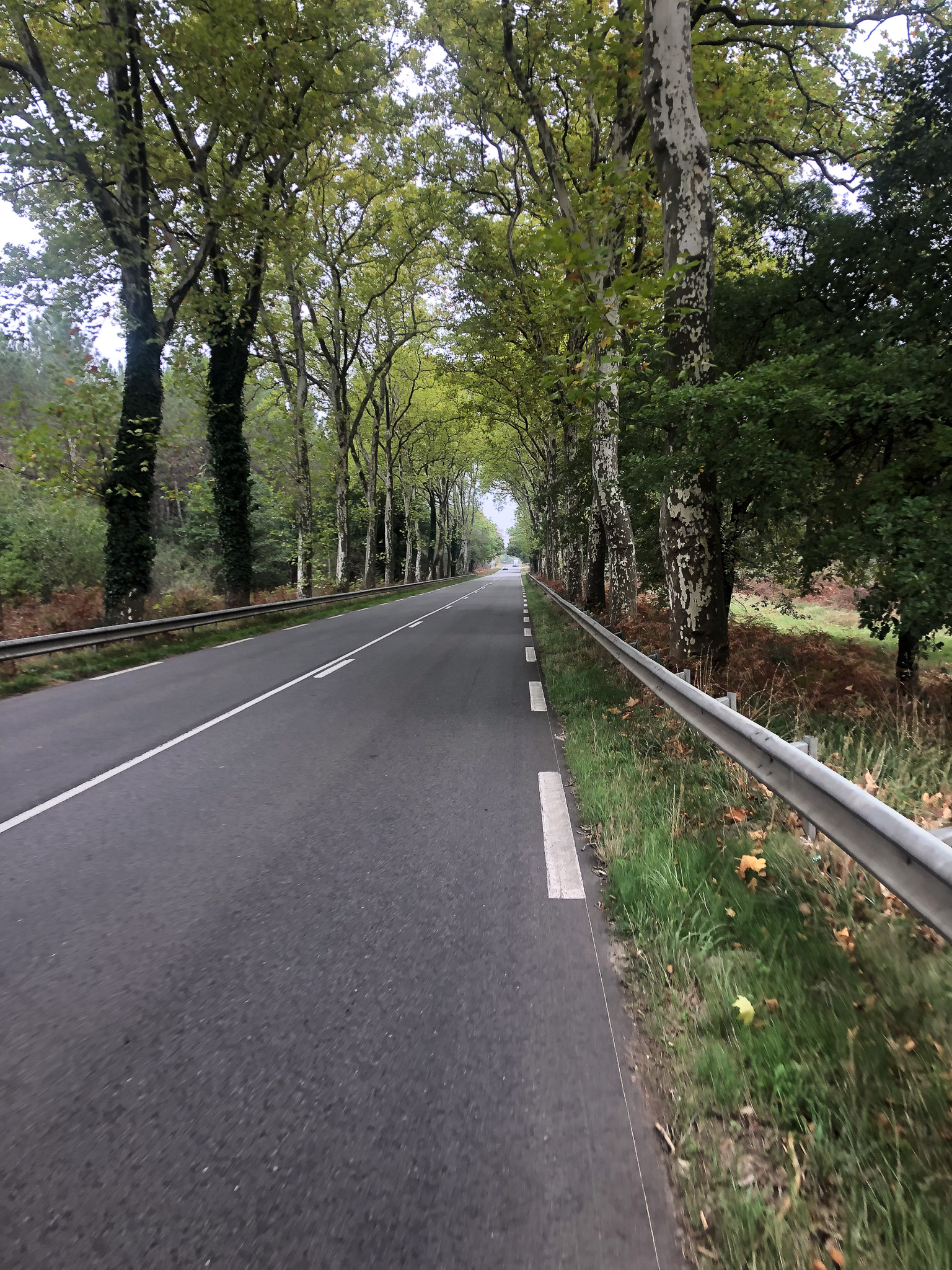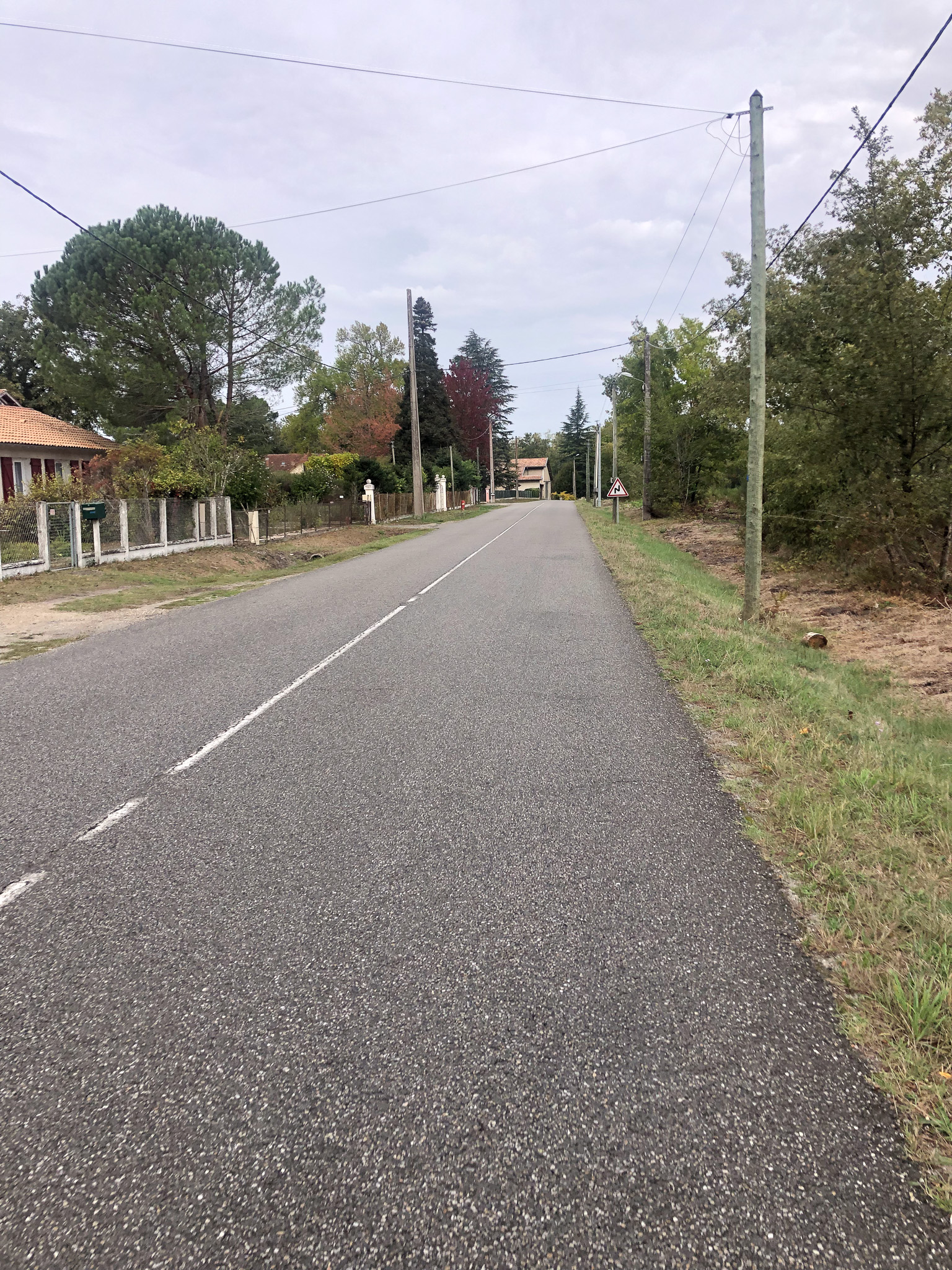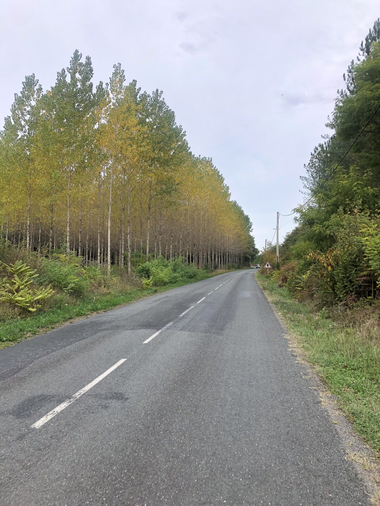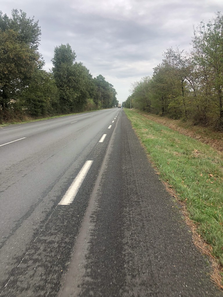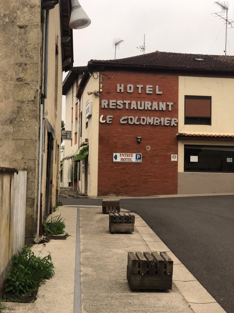 I was moving along, and the kilometers were ticking by 20, 30, 40. By lunchtime I was looking for a place to eat, but none of the small villages I have been passing through were the kind of villages that had anything resembling a food establishment, so I kept riding. I managed to find some small shops here and there where I could pick up a snack or two, but a real meal eluded me. Around 105 Kilometers in the town of Aire-sur-l’Adour I came through around 2 in the afternoon, and saw a nice place along the river with people sitting and enjoying themselves, so I stopped and propped my bike and took a seat and sat and sat until finally I got someone’s attention. What I didn’t realize was all those people I saw were just drinking. There was no food on their tables, and the lunch kitchen was closed, and dinner wouldn’t be ready for a couple of hours. I managed to get a baguette and hopped back on the bike and rode off NNW. I was on a bigger road, but at least it had a decent shoulder, and the passing vehicles would give me a little boost of speed. I nibbled on the baguette for the next few hours until I rolled into Roquefort and decided that 145 kilometers was enough of a first ride after Covid, and I found a 1 star hotel to spend the night. I might have been able to find a better place, but my phone power was low, and by the looks of the town, this was not a tourist destination, so I believe my choices would have been limited.