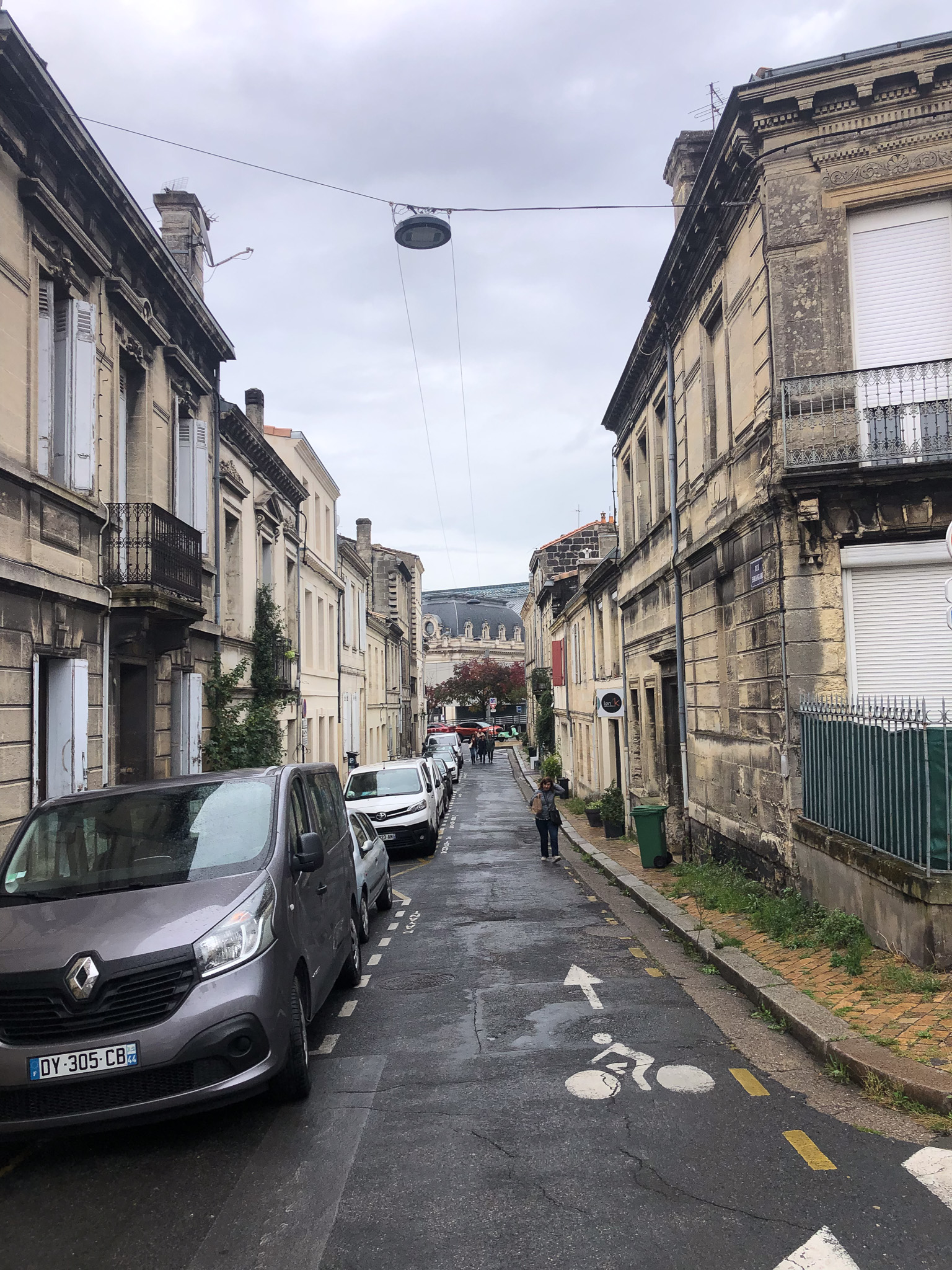 Once I was on the road, I would have stopped anywhere I could have purchased some baked goods and that would have been all I needed to get to Bordeaux as it was only about another 70 kilometers and I did have a giant meal the night prior. There was however a slight predicament. While there was a main busy road leading in that direction, to the West of that was a giant National Forest with few road options, and on the East was a more rolling countryside and more kilometers, and the weather forecast for the day called for rain starting early afternoon. What I should have done was ride North to Langon and then to follow the river roads into Bordeaux, but instead I leaned more towards the shortest distance algorithm and because google maps was in bicycle mode and treated any passage for any bike as possible passage, at some point I found myself in the National Forest on a road that became very sandy and unridable in spots, and I had to dismount and walk. My service was pretty shitty as well, so my only option was to hang an East out to what turned out to be a fairly truck heavy road, that I had to be on. At one point, when I heard one coming up behind me, I just pulled off the road. There was no shoulder, and while they did pass with as much room as they could squeeze, they weren’t really slowing down, so I just wanted to get off that road alive. I was on that road to Landiras, where I jumped on a better road to Saint Michell de Rieufret where I left the National Forest and entered the vineyards South of the river La Garrone. From there is was rolling hills through vineyard after vineyard, eyeing the unique tractor devices that these places employed to manage their vines as the rain began to fall and as kilometer after kilometer accumulated, I moved from rural to semi-rural to semi urban to the full urban streets of Bordeaux. I had booked a place already for a couple of nights, not the good deal I had in Argeles, but a place real close to Gare Saint Jean, the train station there in Bordeaux.