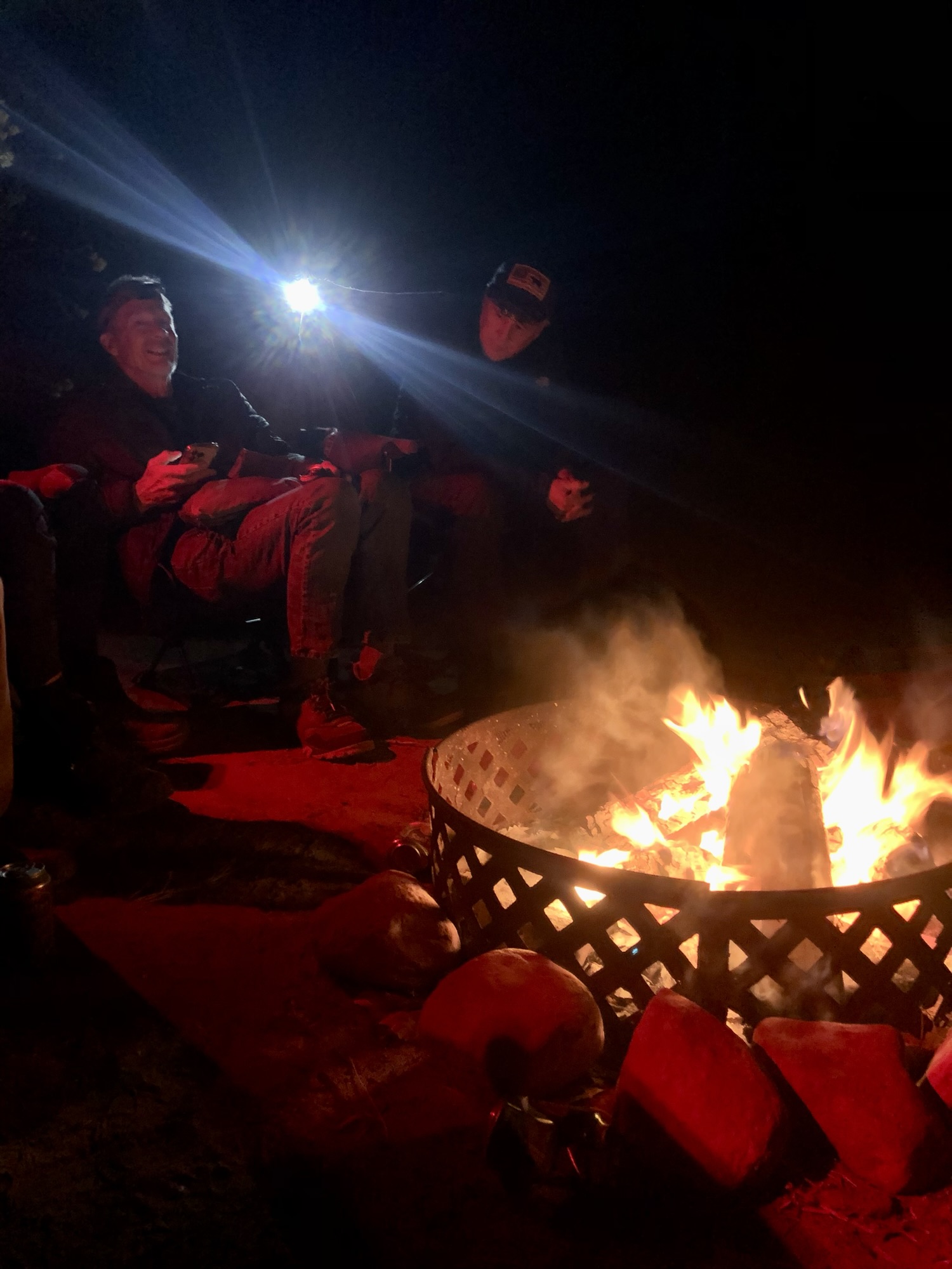 With the winds gone, we got the fire started, and prepped for dinner which on this night was hamburgers, impossible ones for me. All the fixings and various other acroutements were laid out for our consumption. And of course, plenty of beers and a little sipping whiskey to boot. With the fire we were able to stay up later and enjoy the evening more, but as we are all mostly over the age of 60, the bed calls, and slowly people wandered off to get some shut eye. Walt, Jim and I were the last stragglers, and eventually we all called it quits.