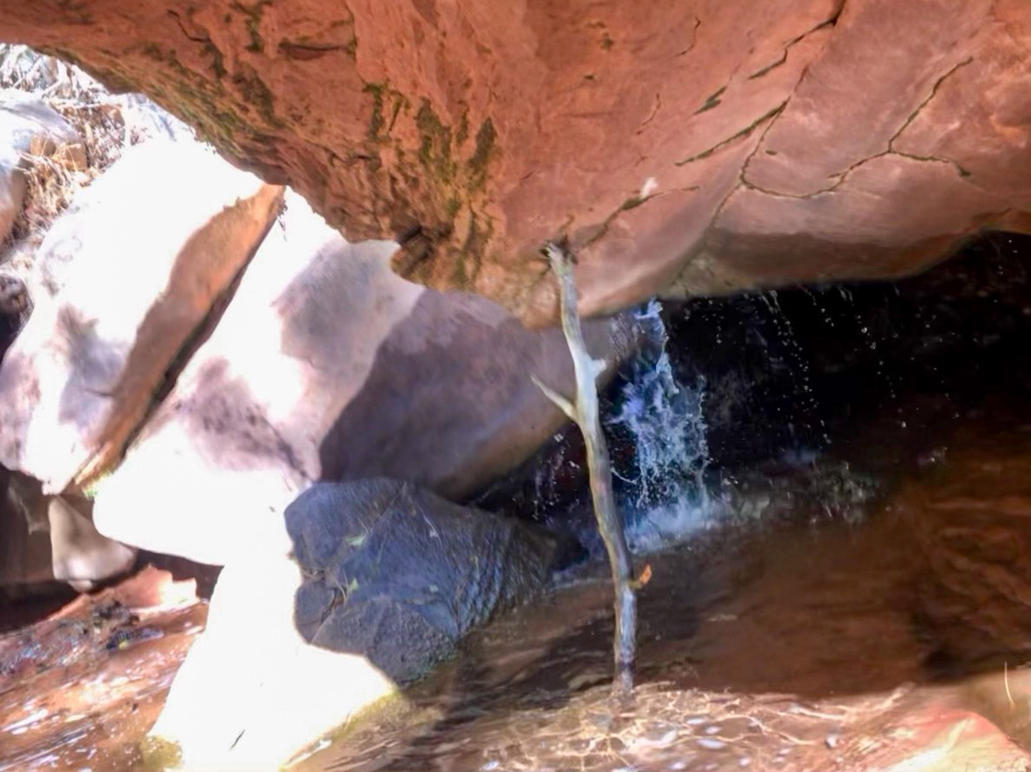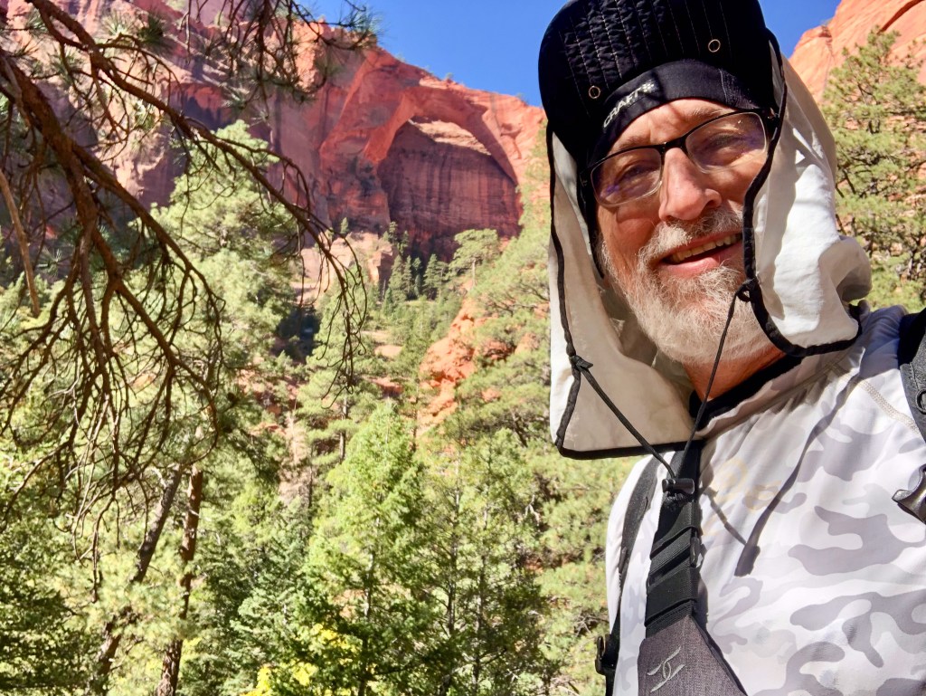Today was a day hike up to the famous Kolob Arch, which sits high at the end of a nearby side canyon, and then to continue upstream deeper into Kolob canyon. Maybe the ultimate goal being to get to Bearcat Canyon and a water fall that was supposedly still running, though probably much diminished this time of year. Our Indiana neighbors were bound for Hop Valley, and then the arch, so we probably wouldn’t see them again till we were both finished.