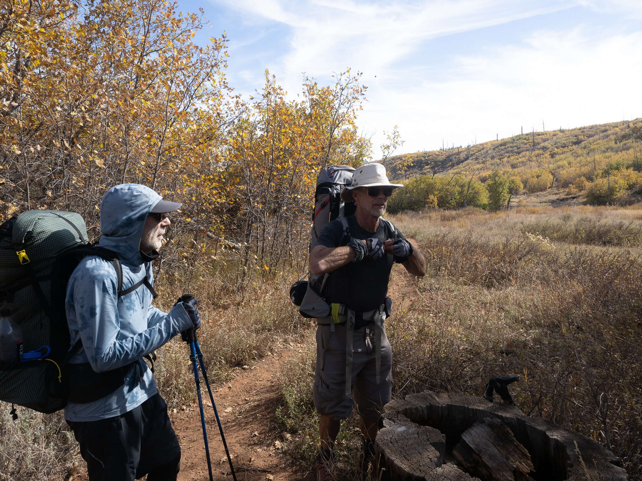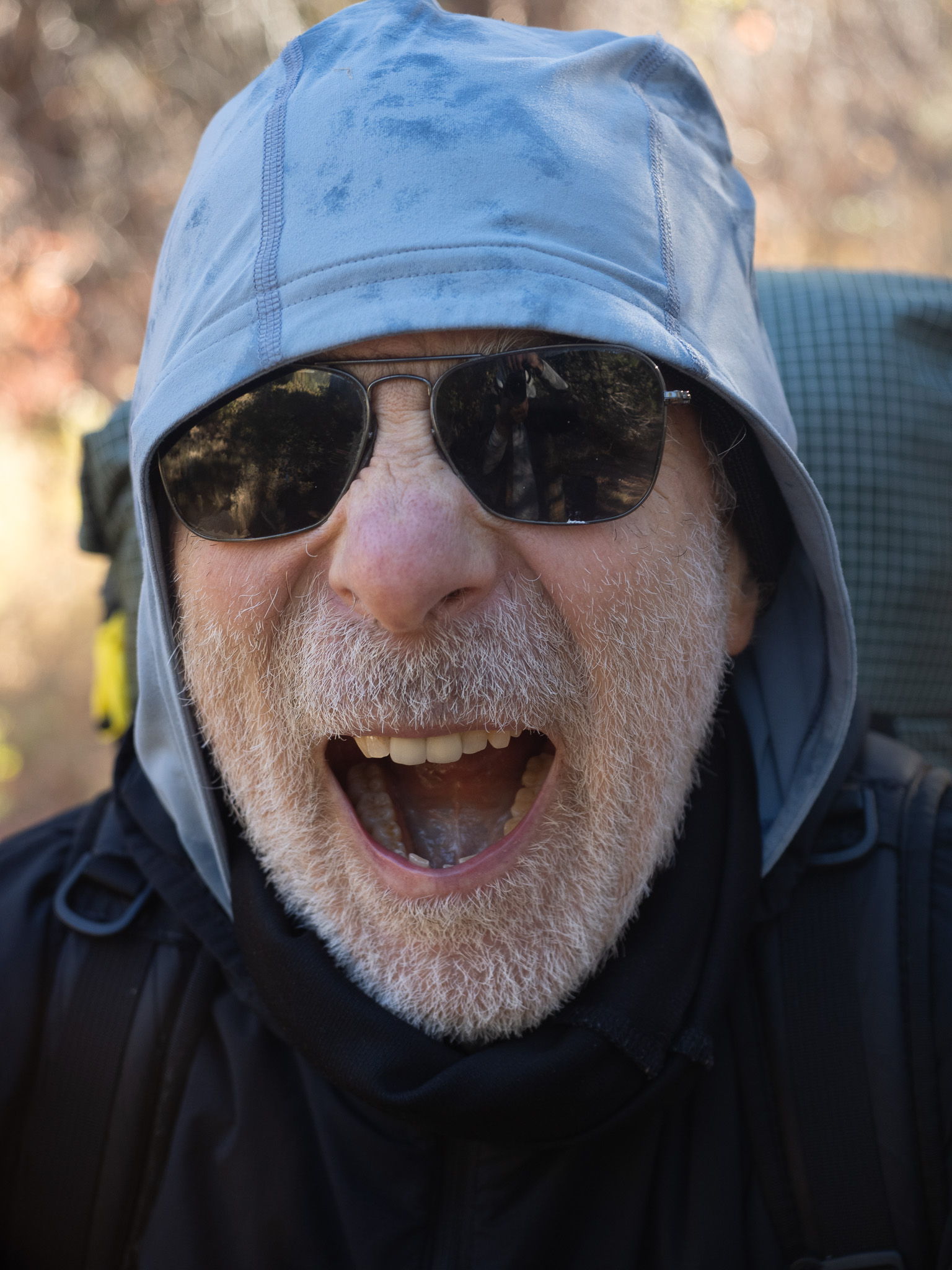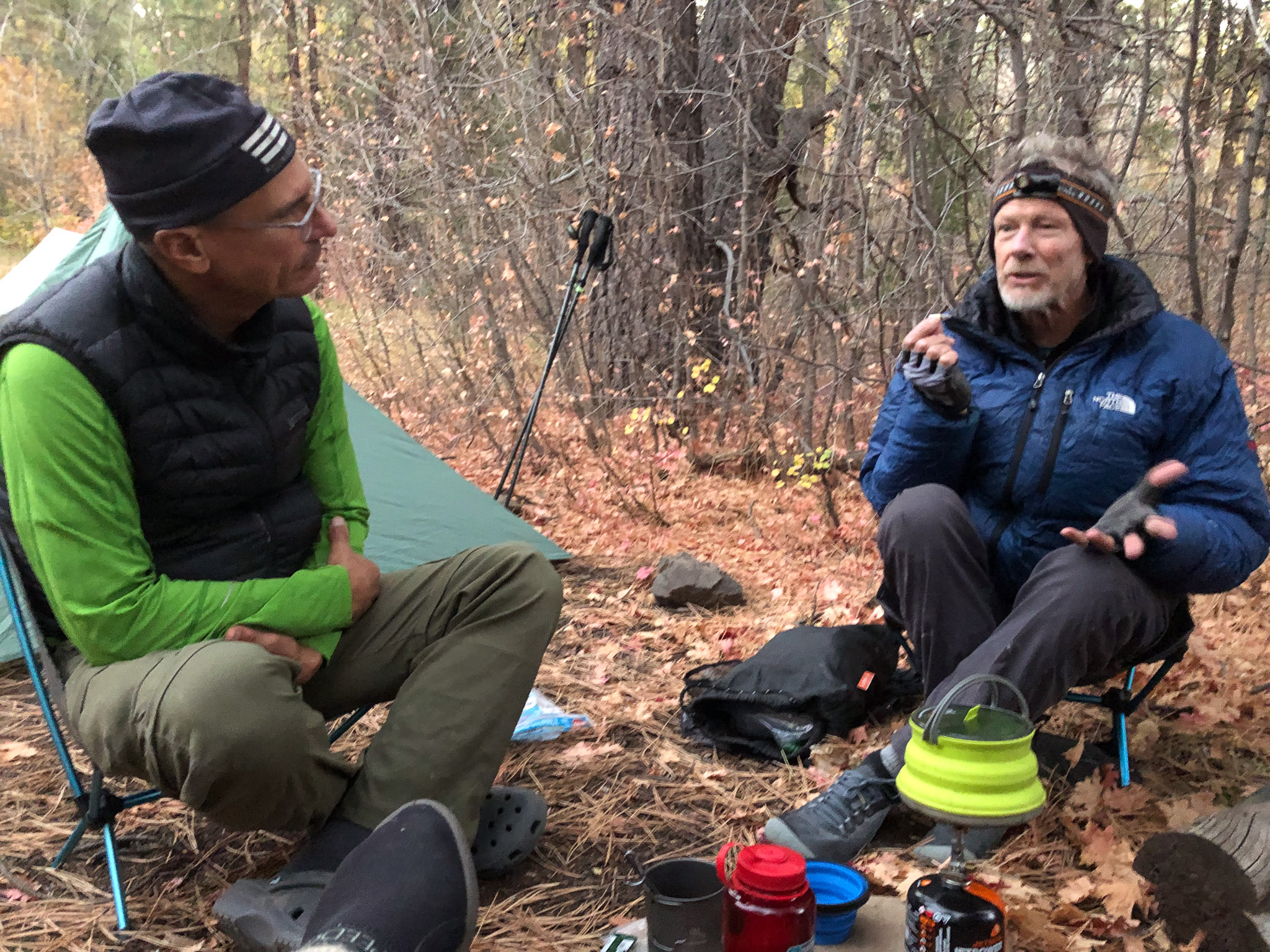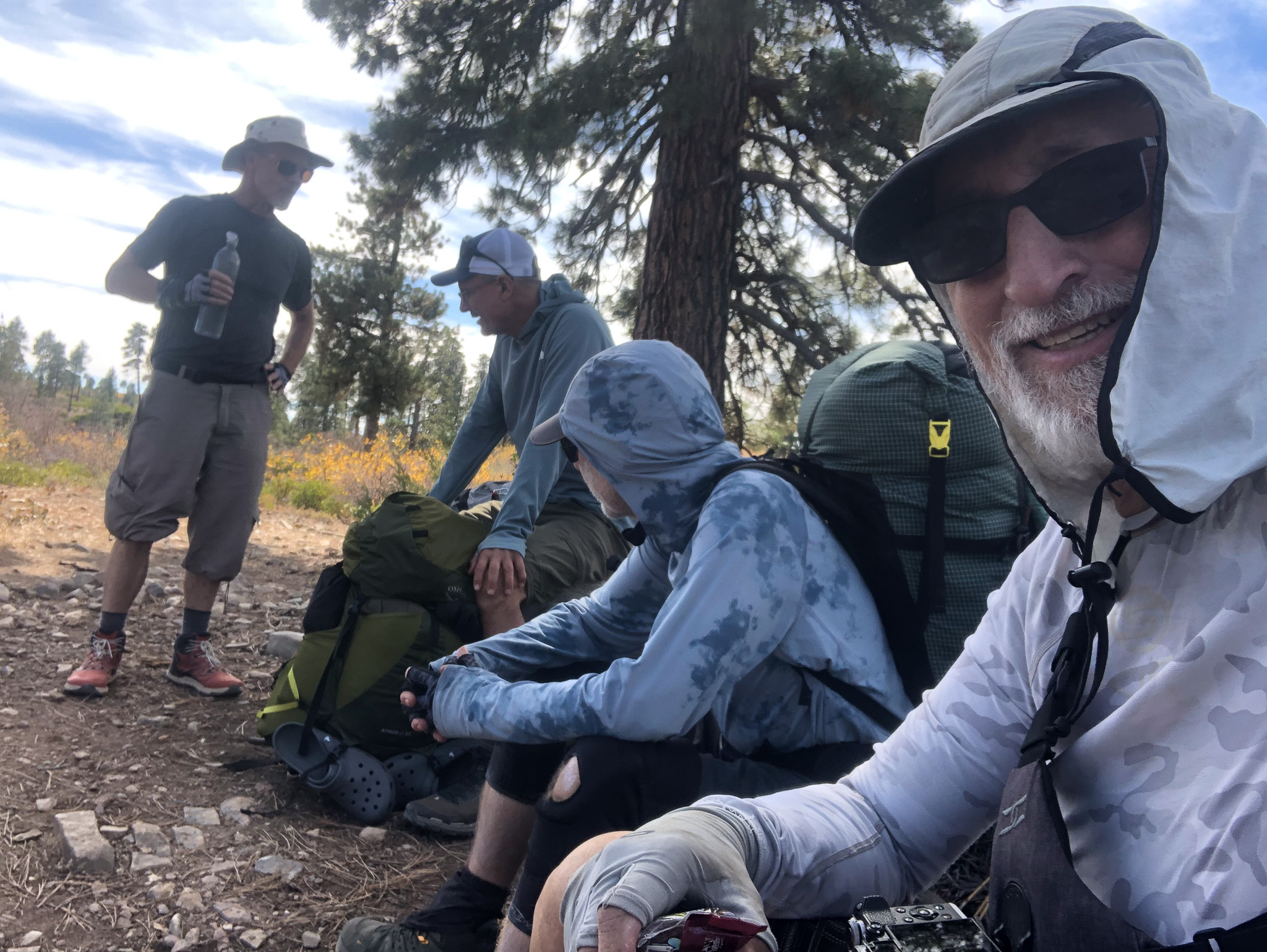 We compared “steps” at the end of each day, where Jed and Jim were scoring around 3-4 thousand more steps than me, who marks out a fairly decent stride. More, when I go up hill. The two “Death March” days were 24,951 and 28,985 steps, and I still backpack in fairly traditional leather boots made by Zamberland (“Zambies”) that weigh in around 4 pounds so 2 pounds per foot. Jed and Jim wear something more like trail shoes that are a lot lighter. Mike is also more traditional, and I can’t remember what Paul was wearing. I think you see where I am going here. Each step moves that 2lb boot further along the trail, and as they add up, fatigue starts to set in, so that by the end of the day, you just want to get those damned heavy-assed boots off your feet and let those feetsies recover.