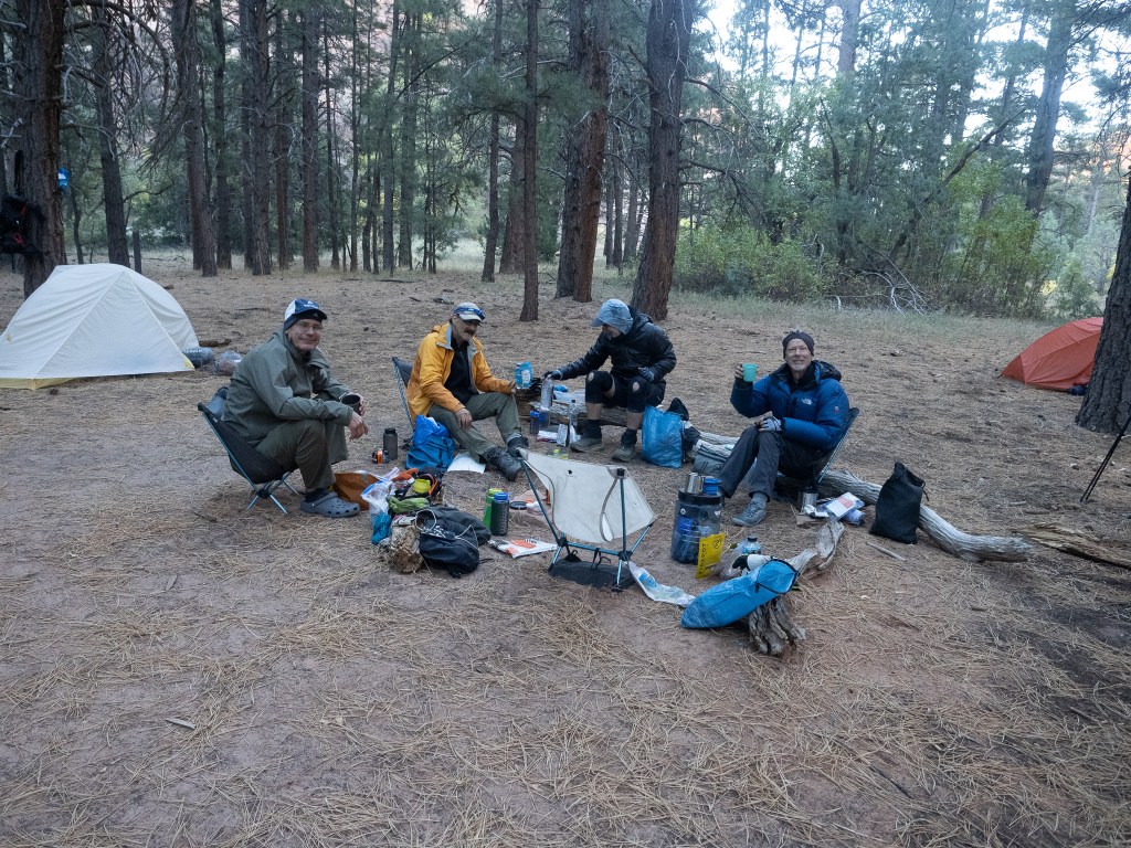 Four tents erected, chairs assembled, Jed had comfy rock to set has ass upon, we settled into the dinner and dessert routine that was customary of each night. I pulled the weather again, as I did every evening and every morning. 0% chance of Precip, and lows in the 40’s, high’s tomorrow in the 60’s, sunny. With the fading light, our teeth brushed, food stored safely, we retreated for the night, to rest for the next big day to the West Rim. We had enough water for breakfast in the morning, so we wouldn’t be rushing out. I think I got up twice to pee, and the stars were full aglow. I wish I had replaced my iPhone before the trip, the camera and software being able to capture these nighttime exposures, but that will be my next trip.