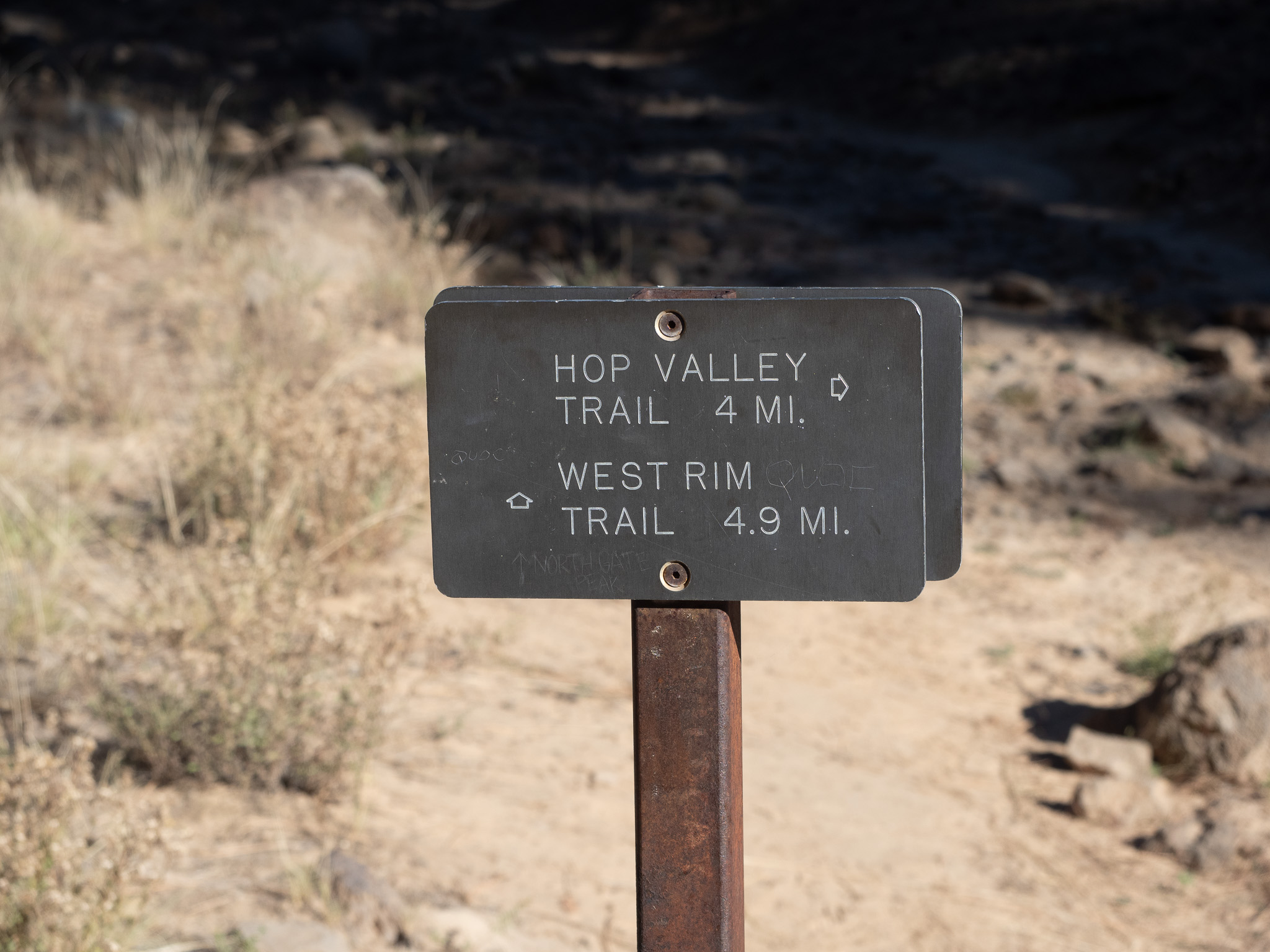 The sun was high enough to bathe most of the EW oriented valley in light by the time we set off. It was a cool morning, but that sun adds 10 degrees easily to the “Feel”, and we started early to drink our water. The Hop Valley is entirely sand, so as you beach goers know, walking in sand is harder than walking on dirt, so we were constantly looking for “firmer” sand to take our steps, and move ourselves just a little bit further along with each step. Rivers wind their ways through valleys, its part of the hydrology of a river to wander, and so the trail has to wander back and forth to maintain more or less, terra firma, and so we crossed the Hop Creek many times that morning. Yes, there were logs, to use, but the water was only inches deep, so I just walked through in my waterproof boots. Yes, that probably made the leather a little heavier, and I would pay for that later.