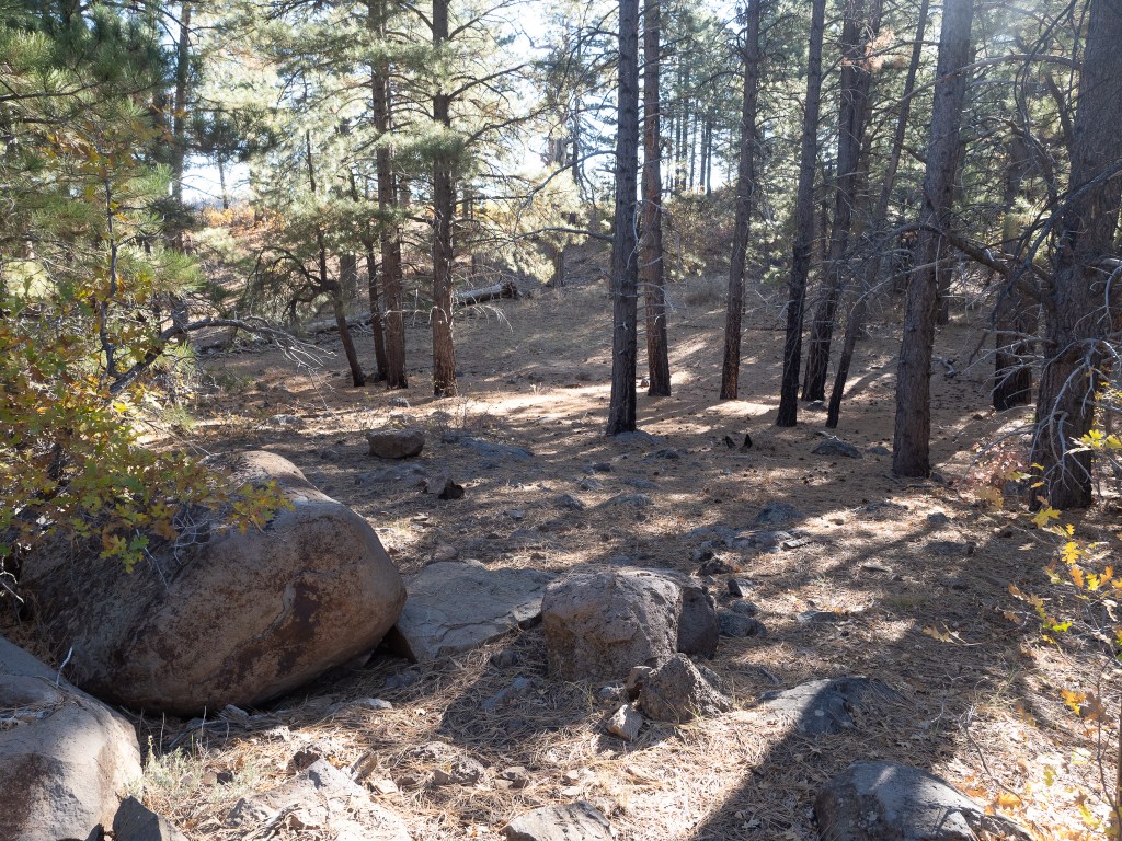 From here on, I must admit that my exhaustion at this point in 2011 impacted my ability to truly recall what lay ahead of us, as we walked it I kept thinking “I don’t recall this at all”, and leading me to think that they had re-routed the Wildcat. My memory had us emerging into an open meadow where we would be a mile maybe from the water source, and have a any number of flat camping opportunities, but as we hiked along, and up on what seemed like an old forest access road, none of that revealed itself. Instead we had rising land to our left and falling land to our right, though the land on the right was rising up toward us the further along we walked. The map showed a drainage crossing, dry this time of year, where that gorge finally met our level, and just past that I happend to stop and look off to my right and there down about 10′ was a small clearing that looked flat enough to accomodate us. “Wait here” and I descended down to it, and found it was indeed flat, and just large enough for 4 tents and a place to sit and eat. “This is it boys! We are done for today,” and the relief that swept over their faces was priceless.